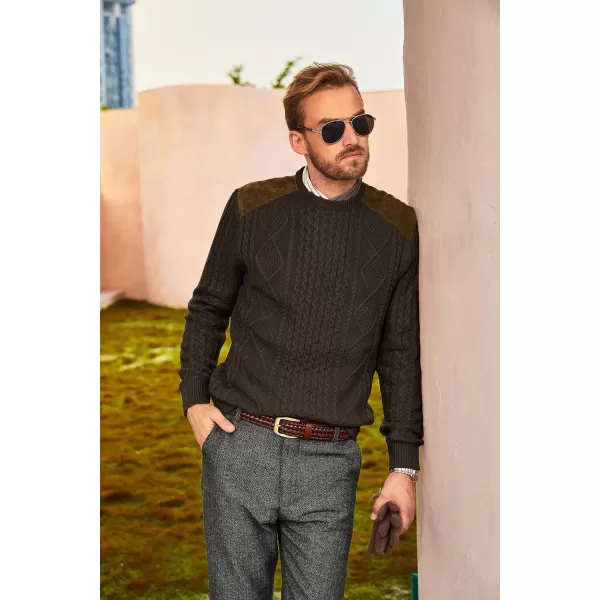 Get your hands on our exclusive PJ PAUL JONES Men’s Military Pullover Sweater Crewneck Vintage Cable Knit Sweater with Suede Patchwork(Coffee) collection, now at a discounted price.