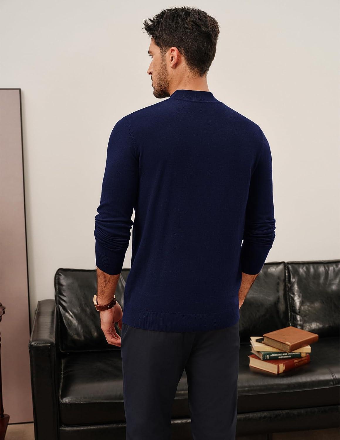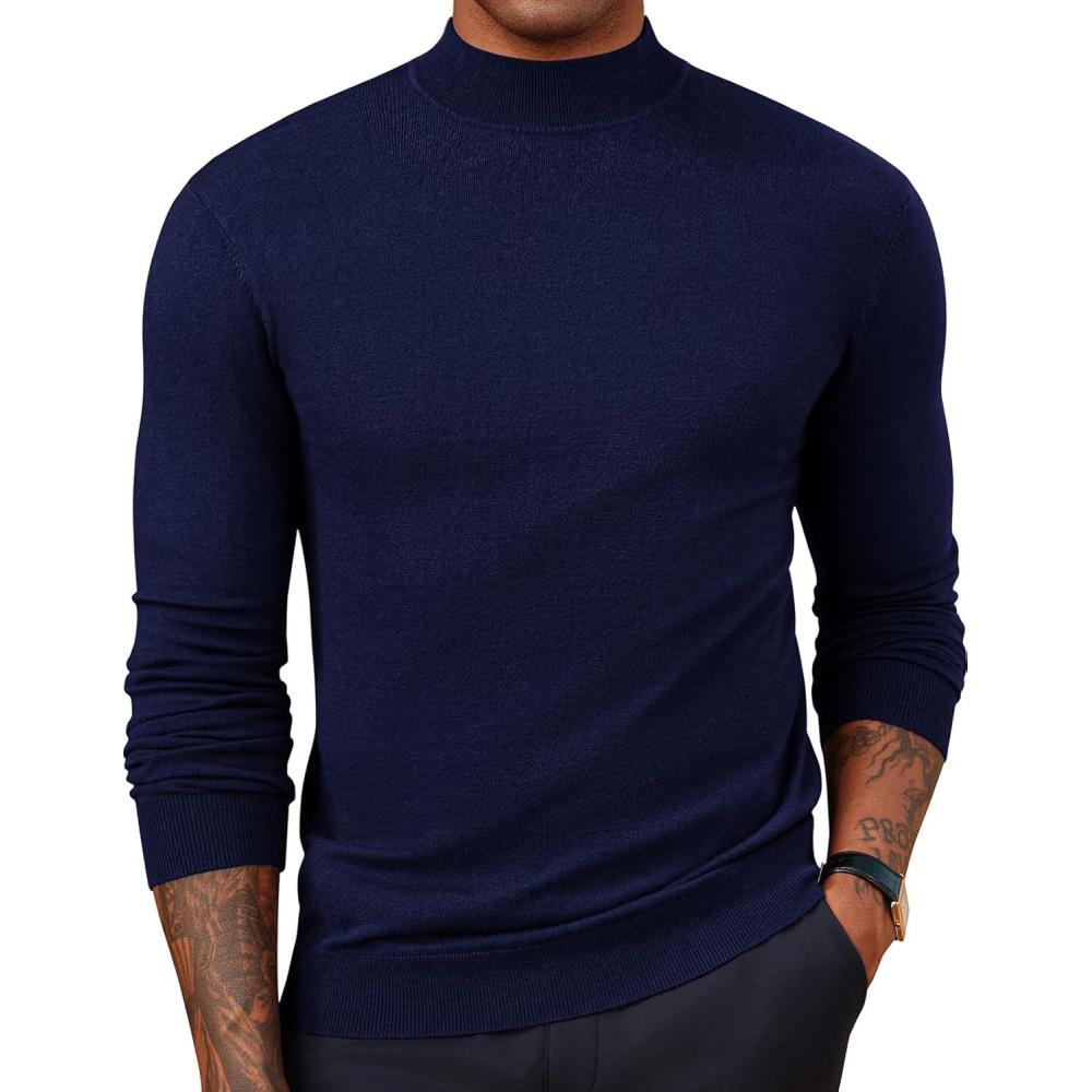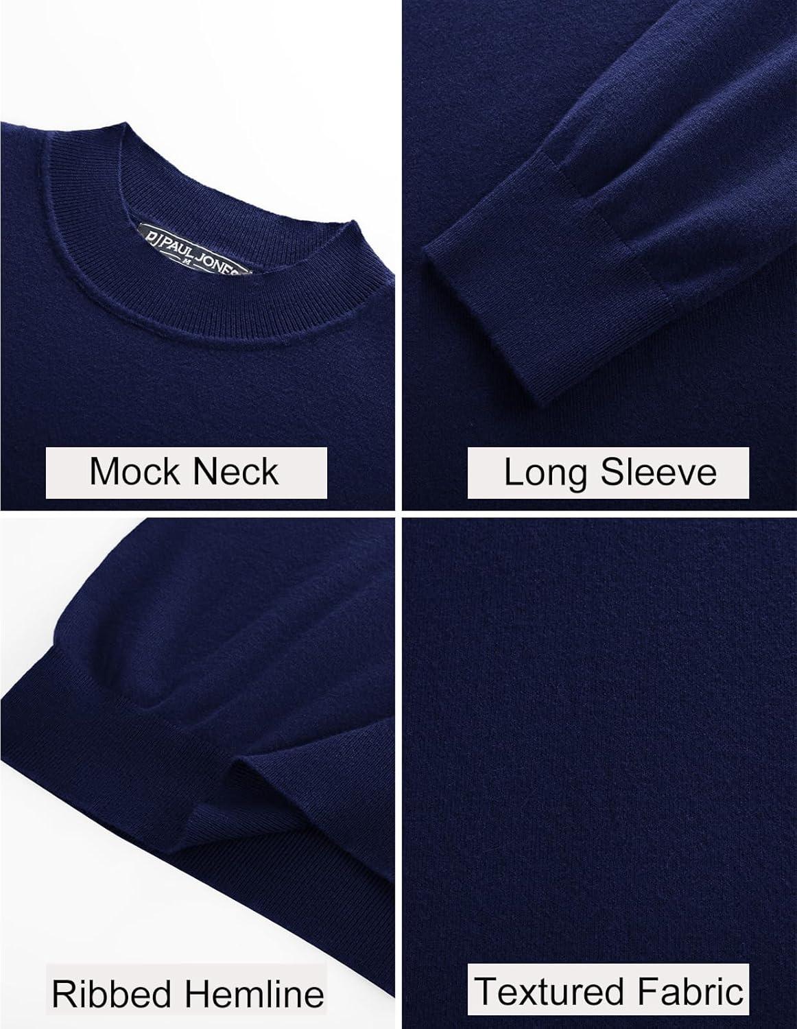 PJ PAUL JONES Mens Mock Turtleneck Sweater Long Sleeve Casual Pullover Sweater Slim Fit Basic Knit Tee(Navy Blue)