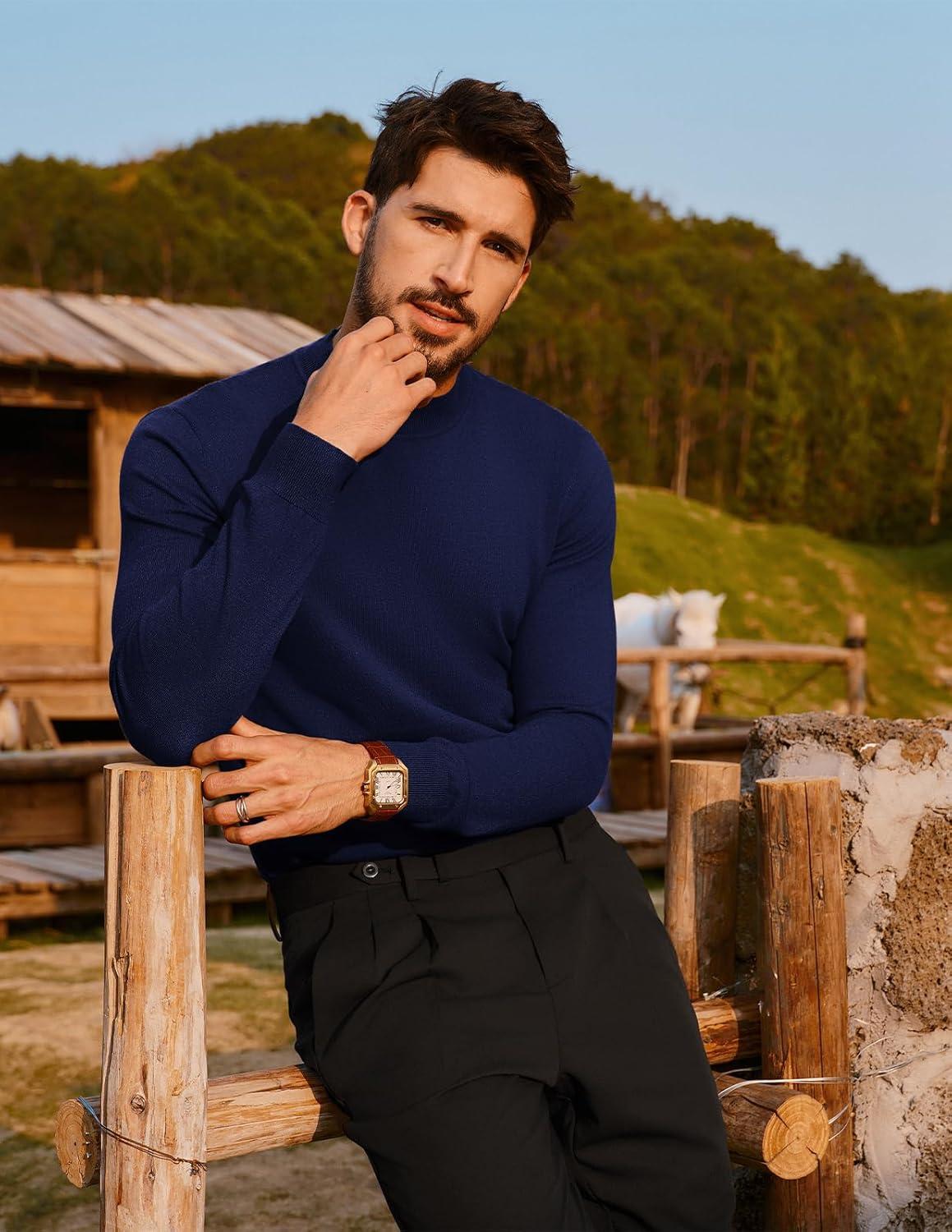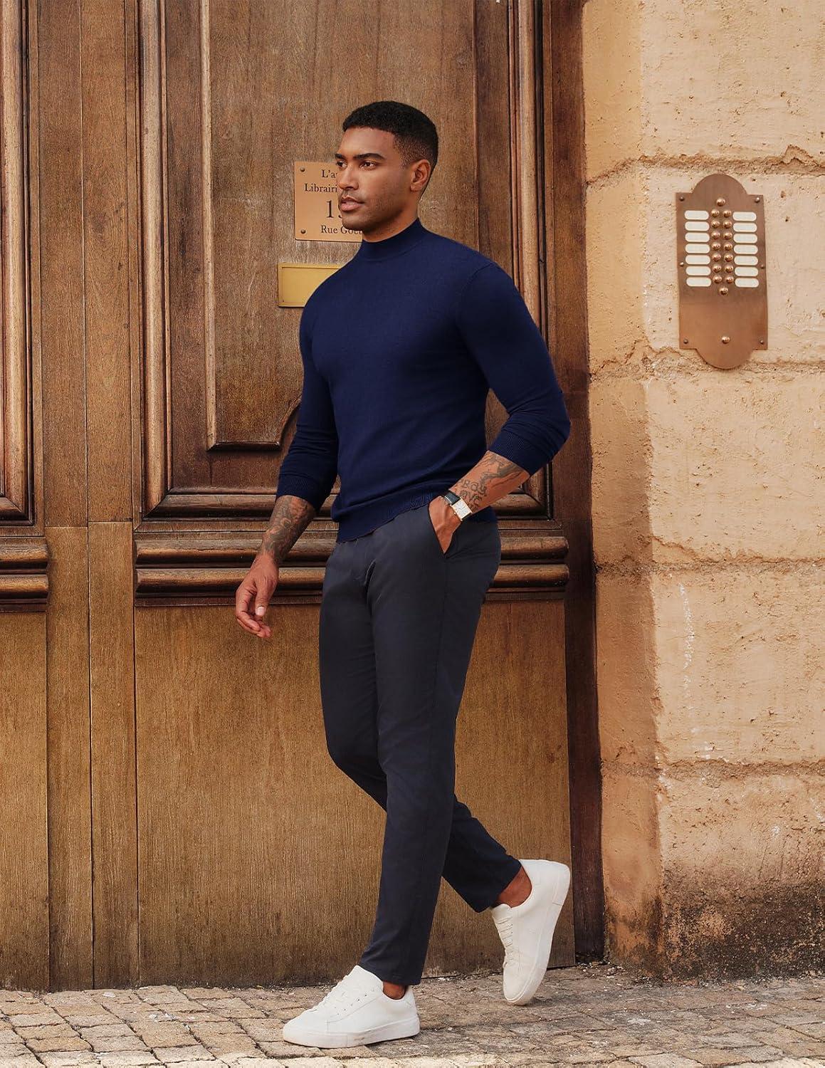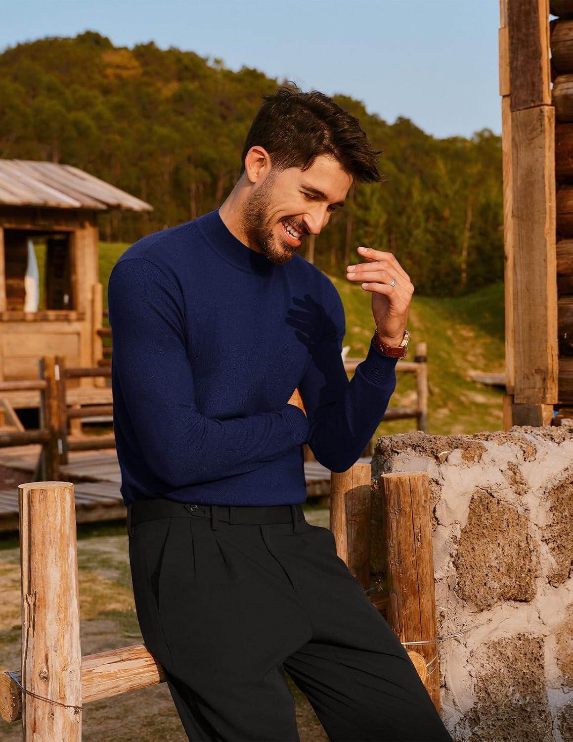 PJ PAUL JONES Mens Mock Turtleneck Sweater Long Sleeve Casual Pullover Sweater Slim Fit Basic Knit Tee(Navy Blue)