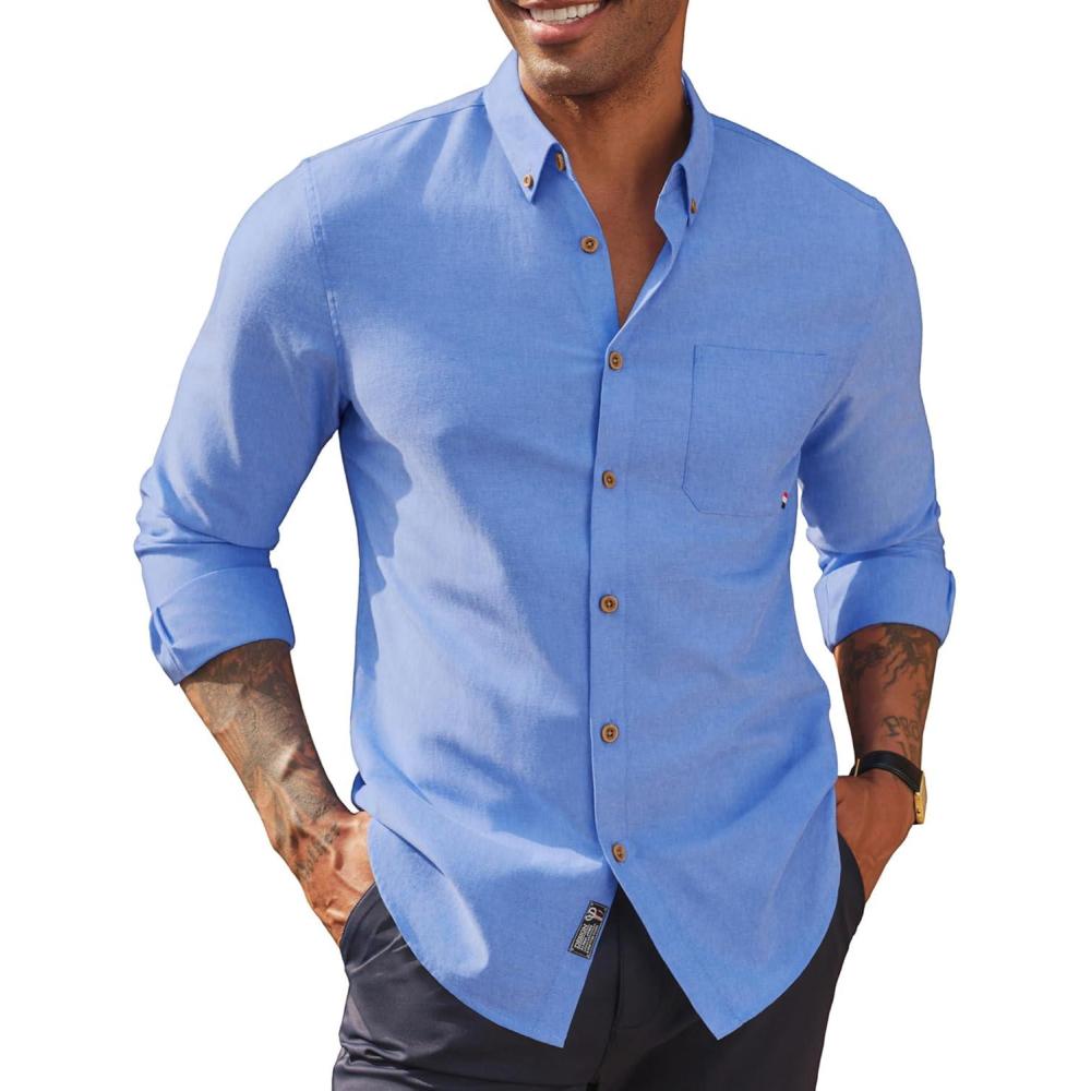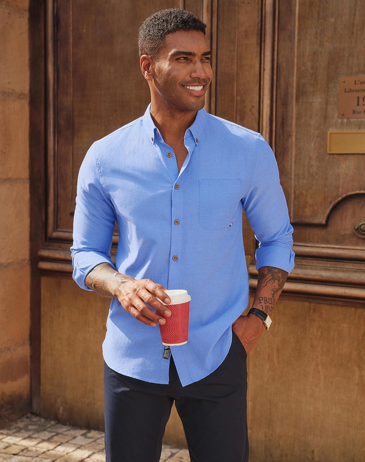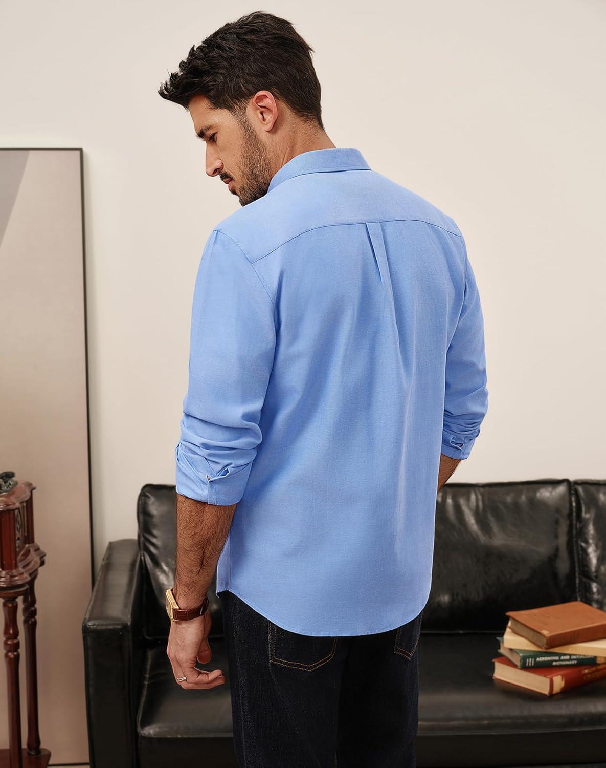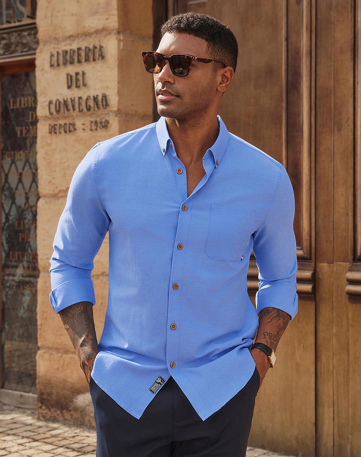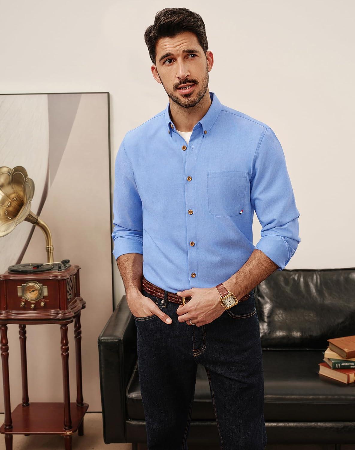 PJ PAUL JONES Men’s Oxford Button Down Shirt Long Sleeve Regular Fit Business Casual Dress Shirts with Chest Pocket(Blue)