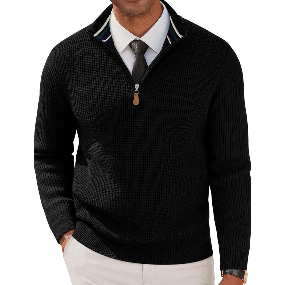 PJ PAUL JONES Mens Quarter Zip Pullover Sweaters Casual Waffle Texture Mock Neck Polo Sweater(Black)