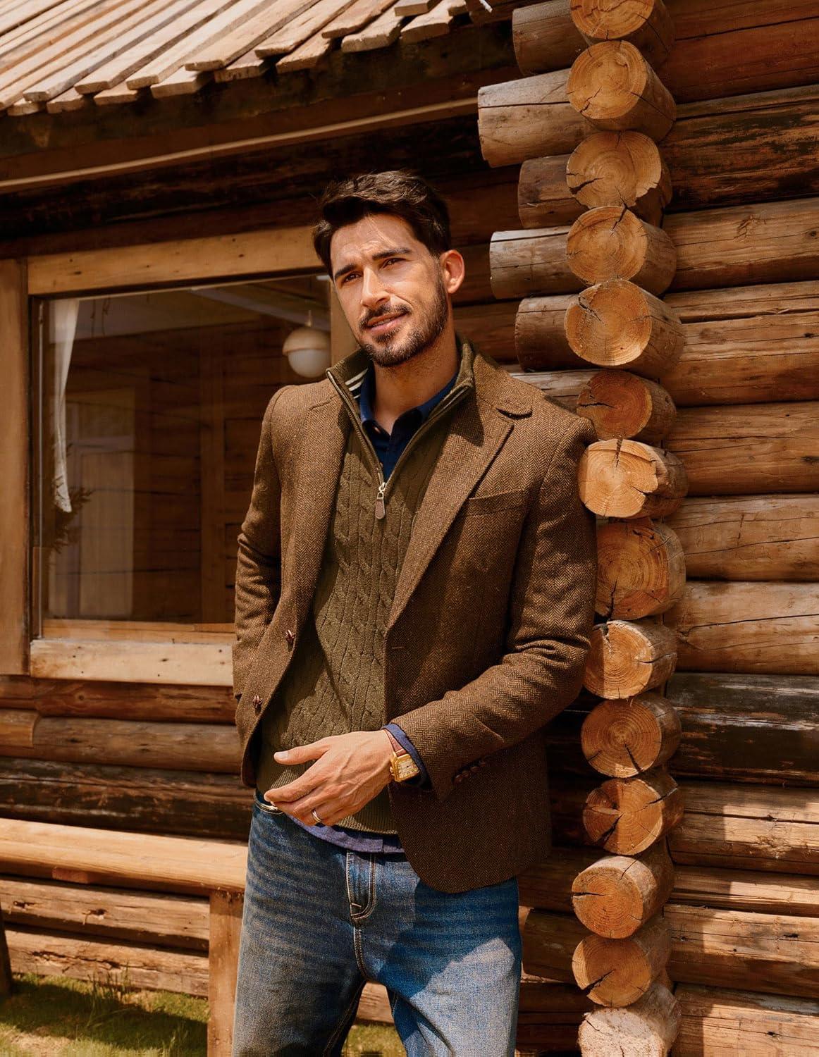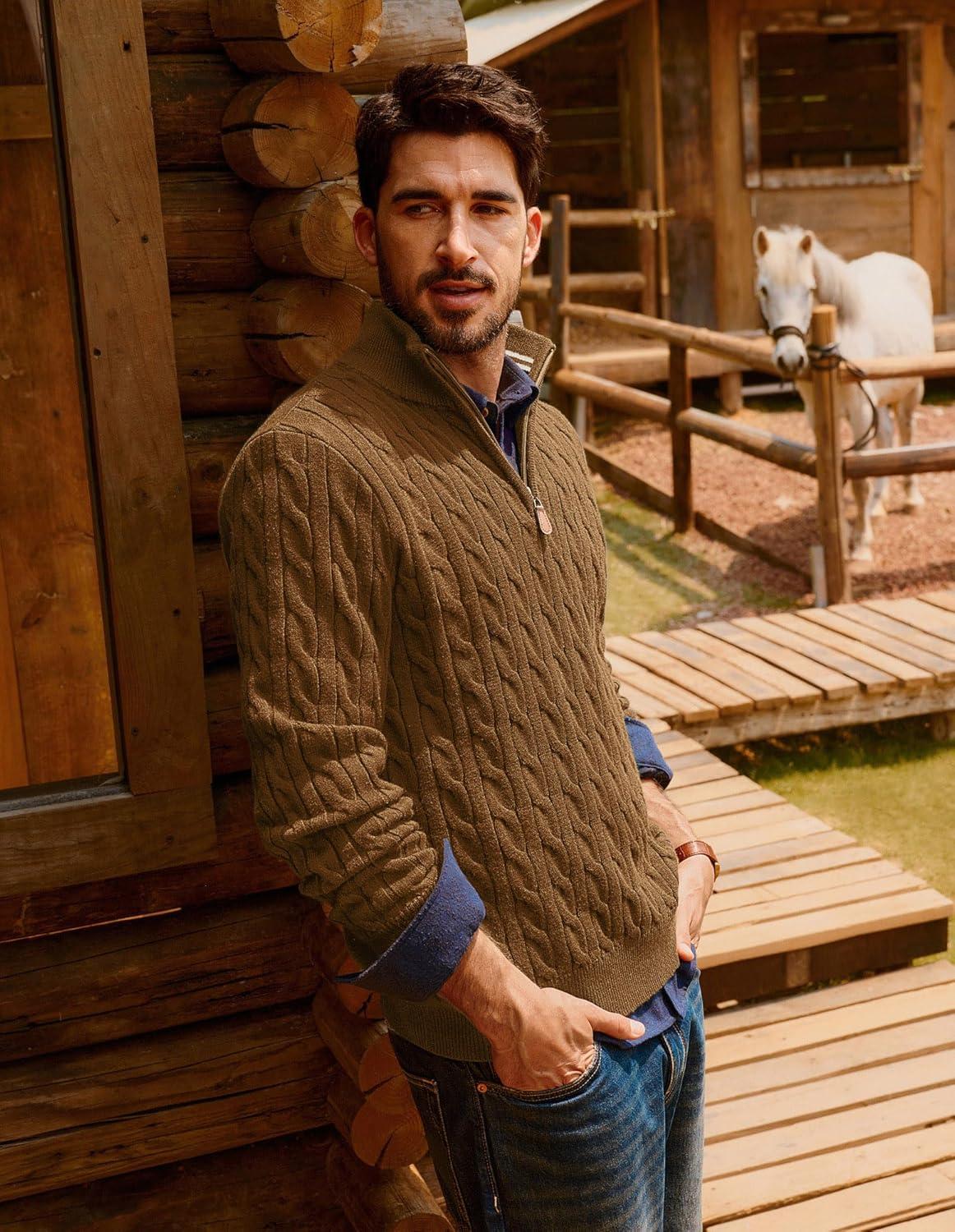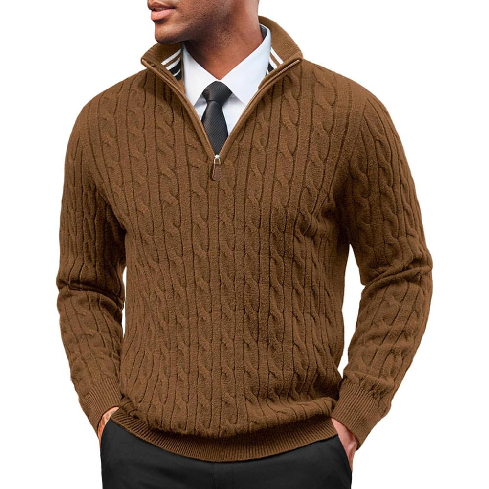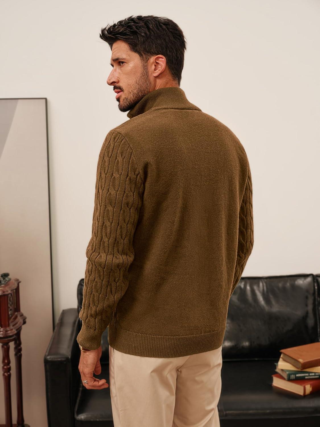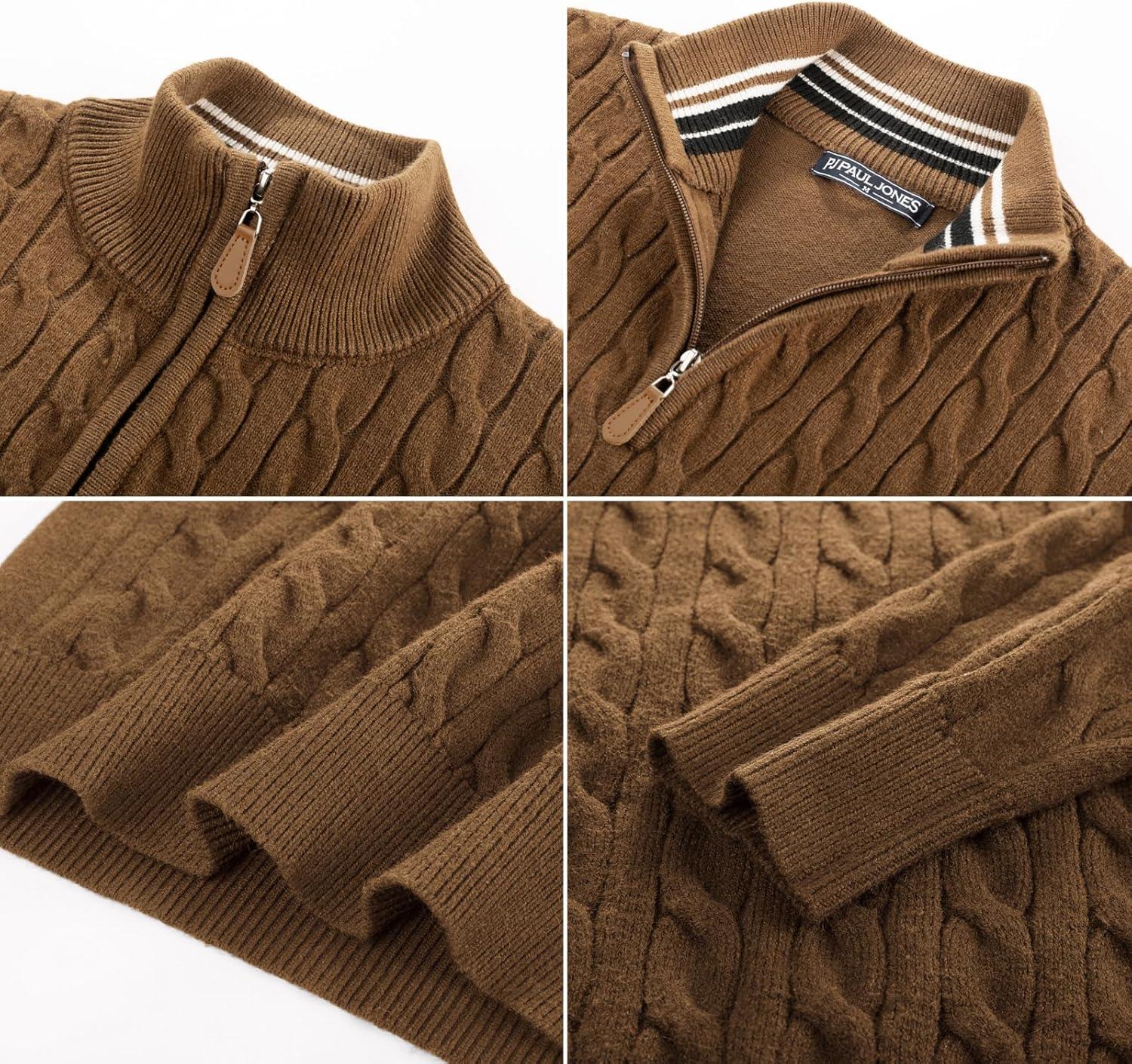 PJ PAUL JONES Mens Quarter Zip Sweater Cable Knitted Pullover Sweaters Textured Solid Colors Sweater(Brown)