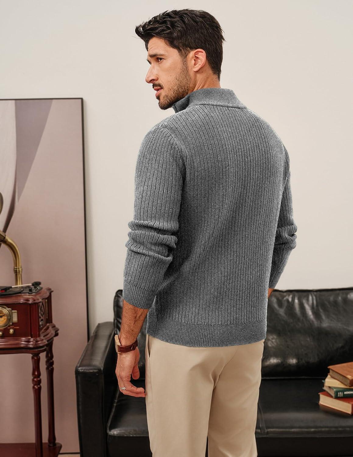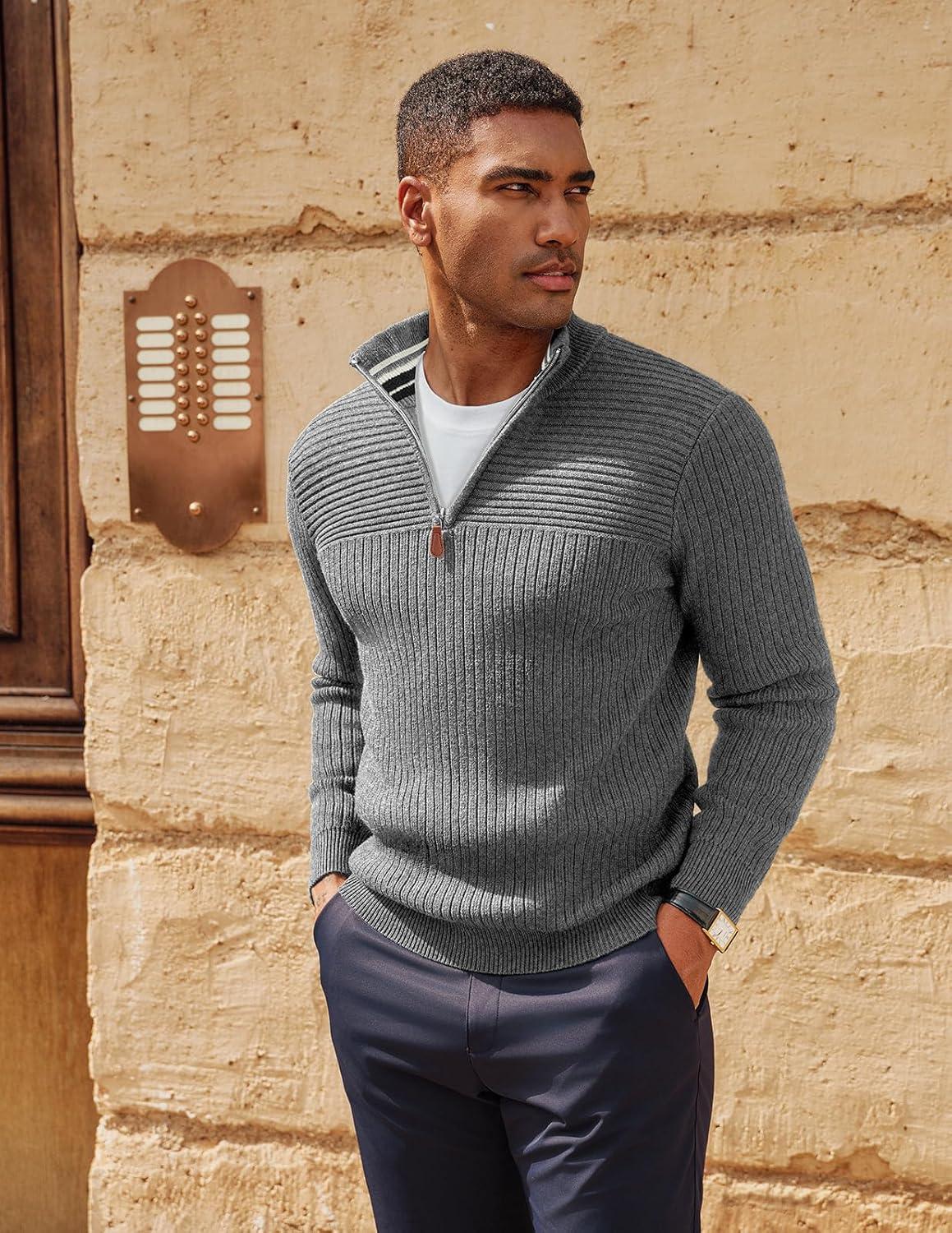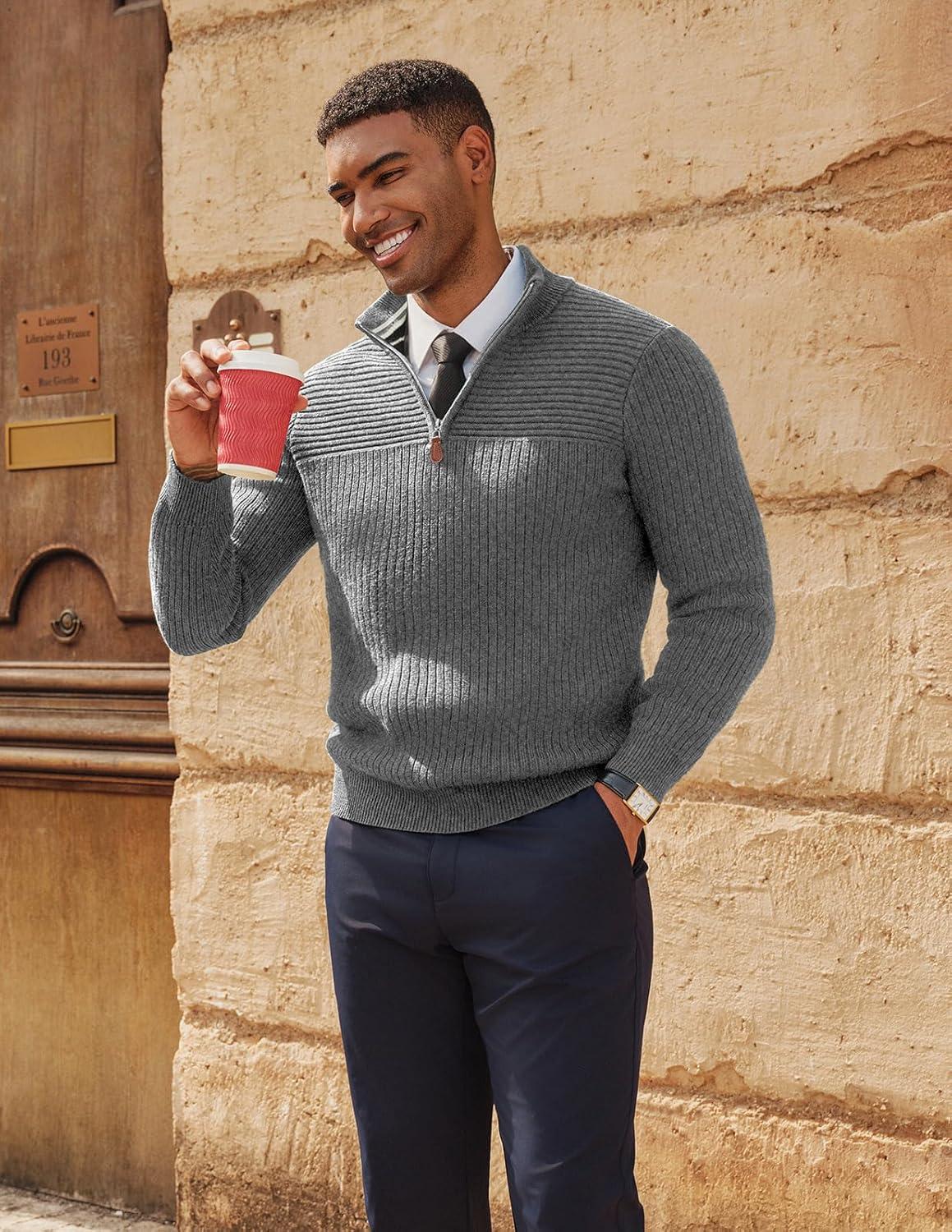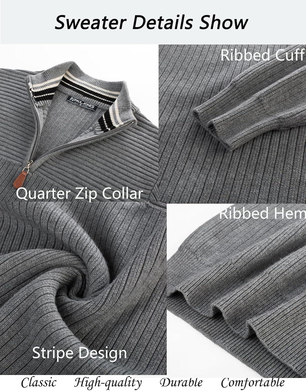 PJ PAUL JONES Mens Quarter Zip Sweater Lightweight Casual Pullover Mock Neck Textured Sweaters(Gray)