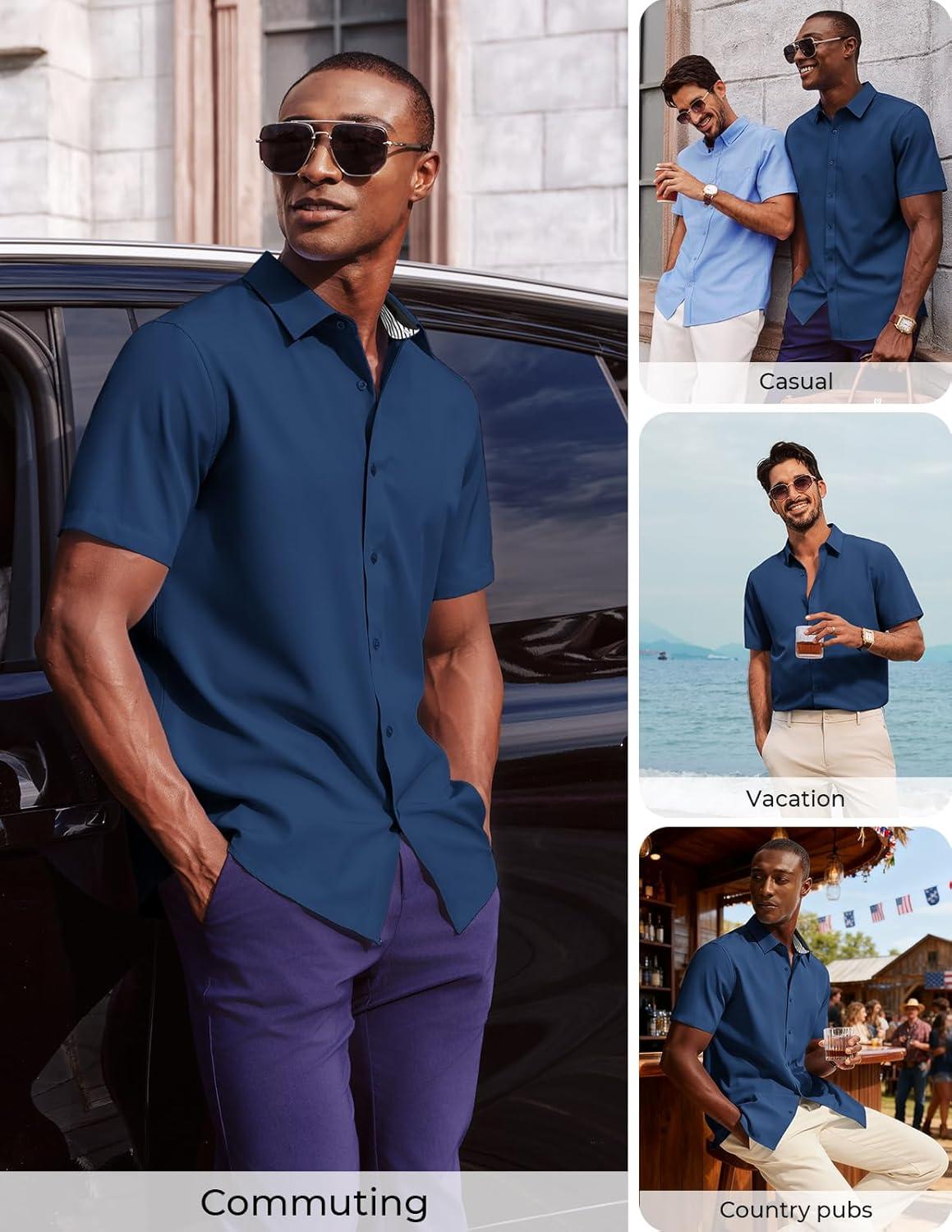 Be the first to review “PJ PAUL JONES Mens Short Sleeve Dress Shirts Stretch Wrinke Free Untucked Business Casual Button Down Shirt Regular Fit(Dark Blue)” Cancel reply