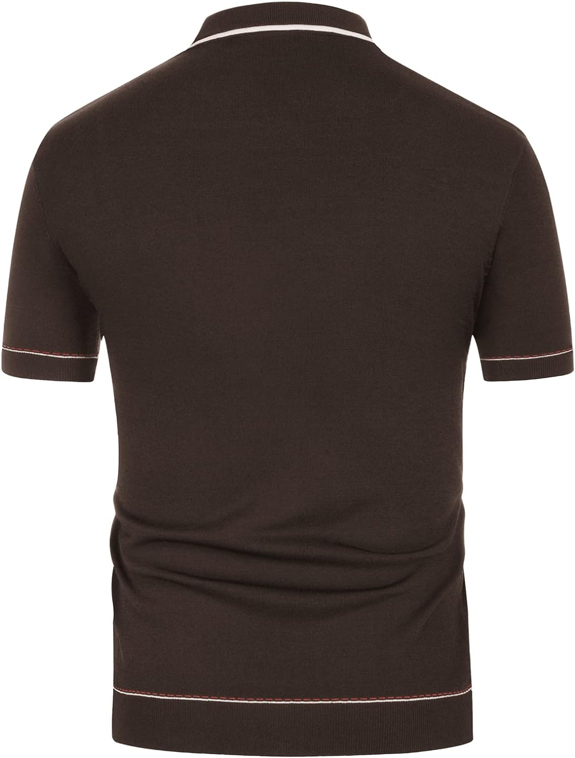 PJ PAUL JONES Men’s Short Sleeve Knit Polo Shirt Vintage Button Down Golf Polo(Coffee)