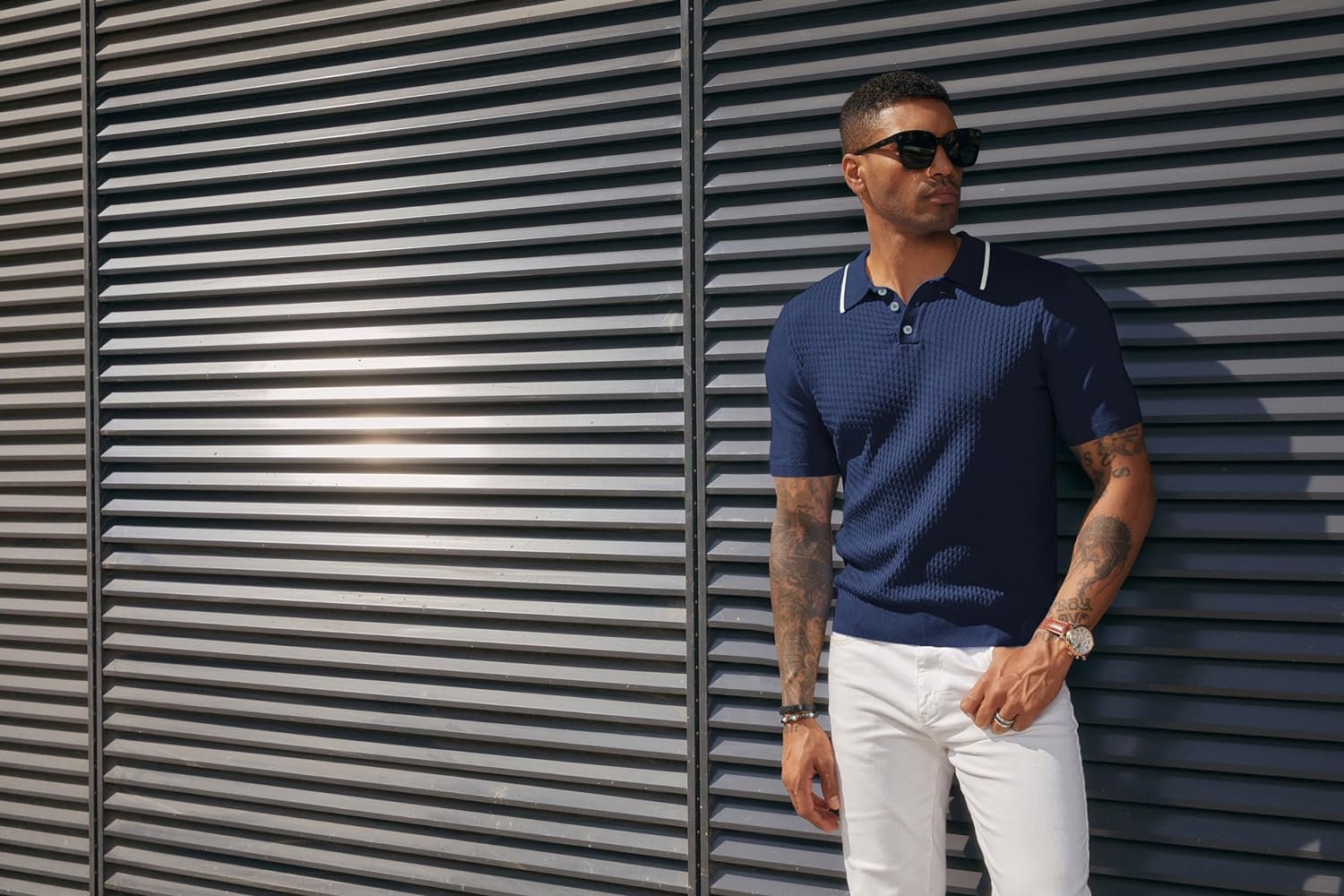 PJ PAUL JONES Men’s Short Sleeve Knit Polo Shirts Waffle Texture Knit Shirt(Navy)