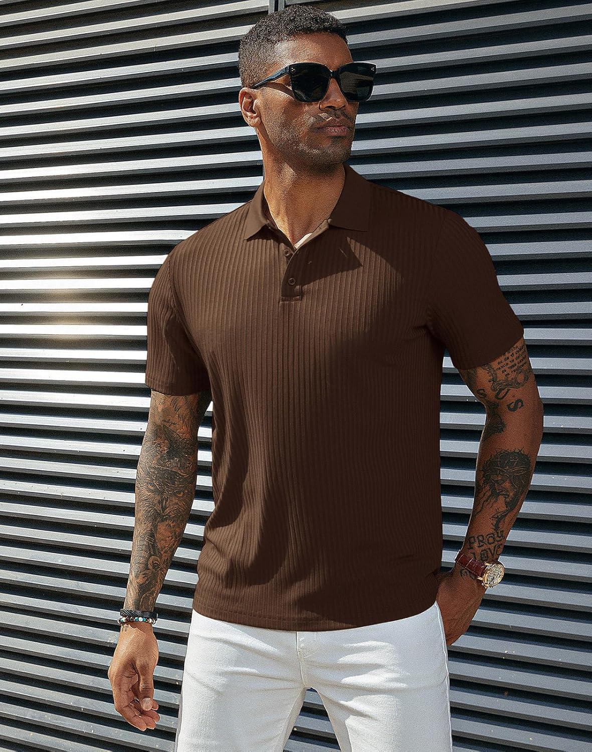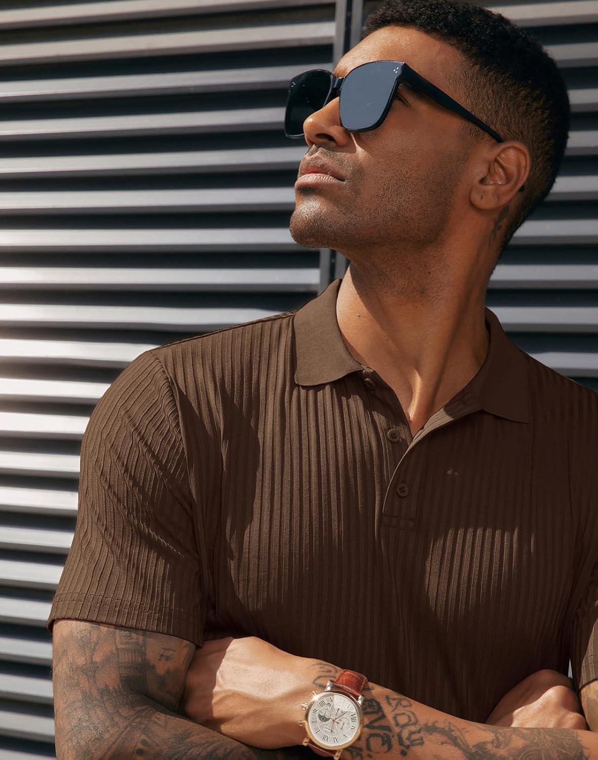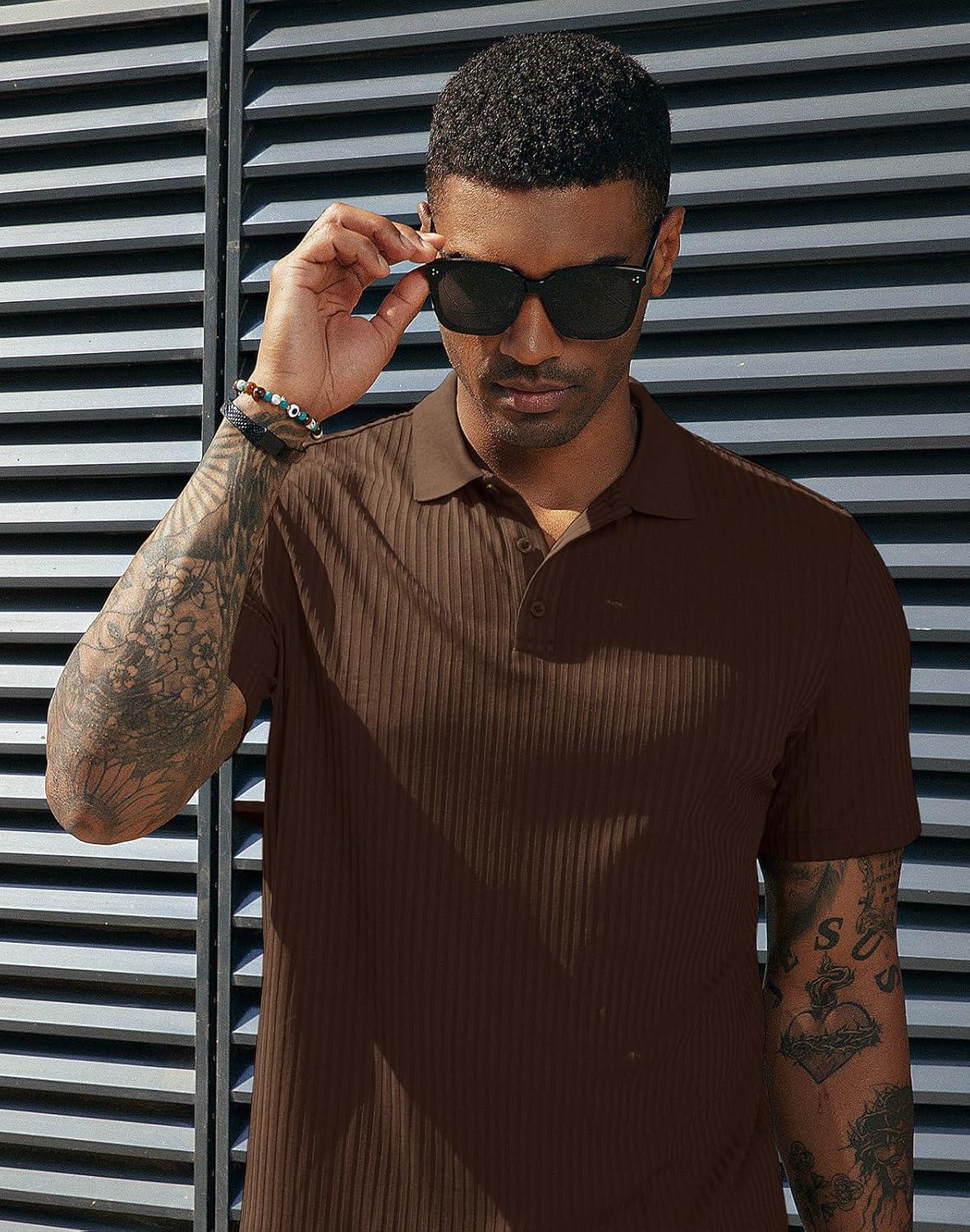 PJ PAUL JONES Mens Short Sleeve Texture Polo Shirts Casual Wrinkle Free Stretch Knit Golf Shirt Tops(Coffee)