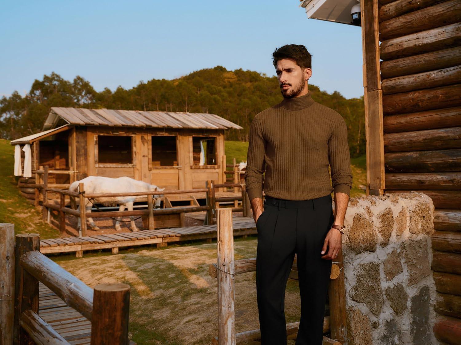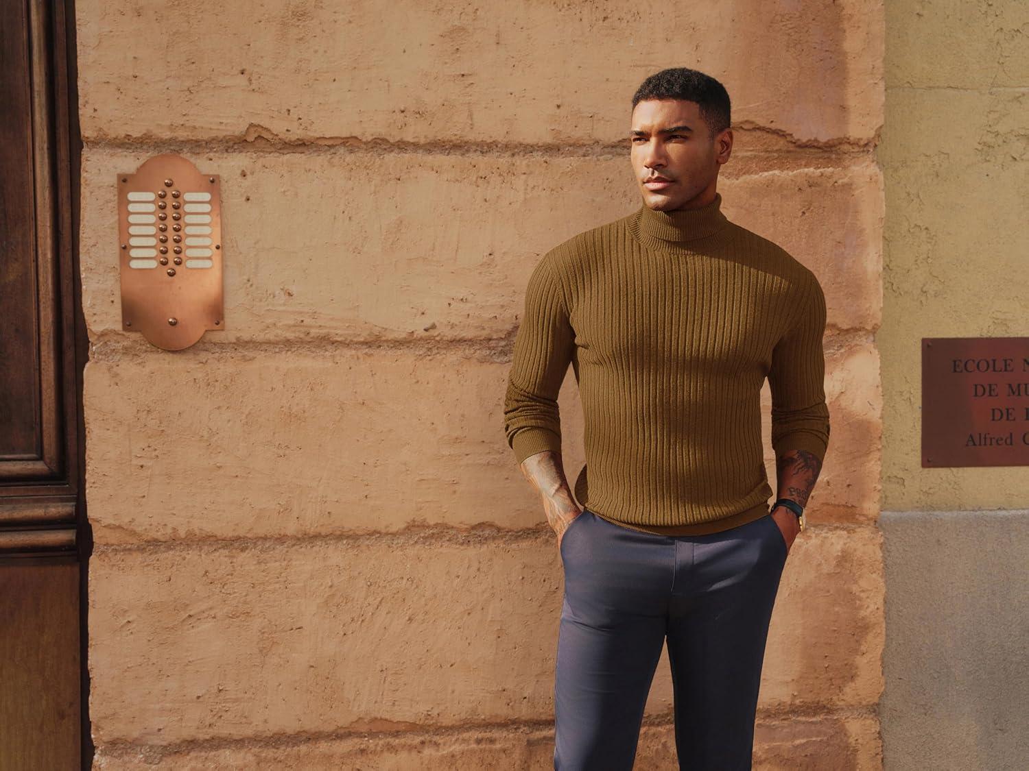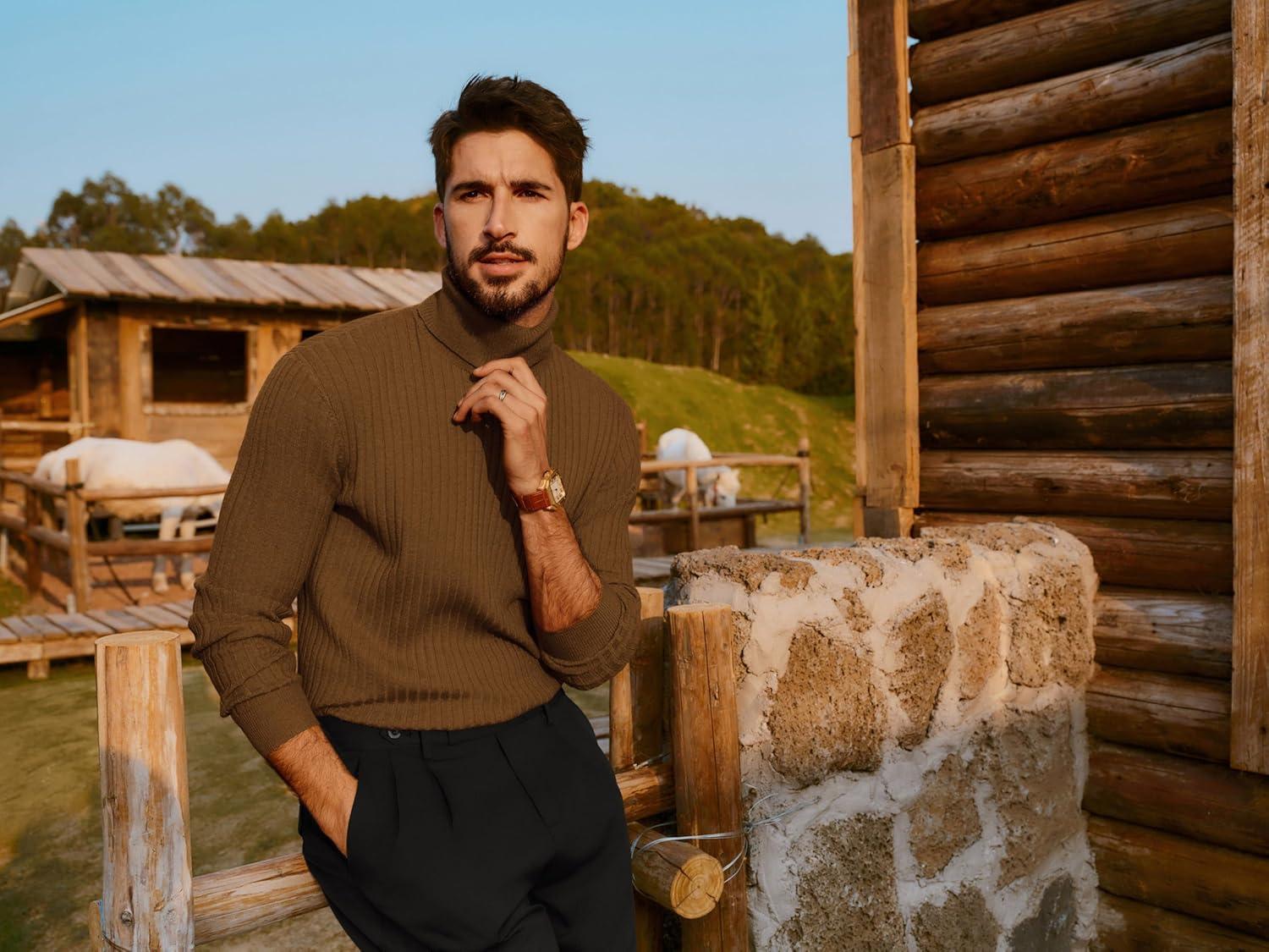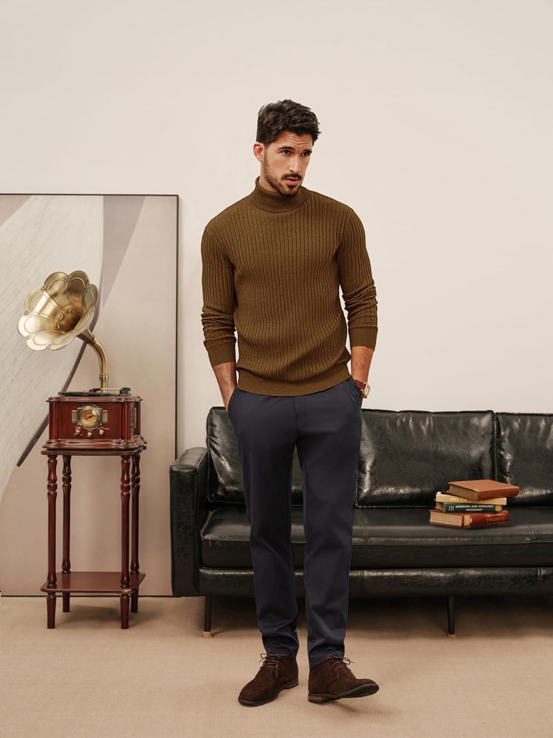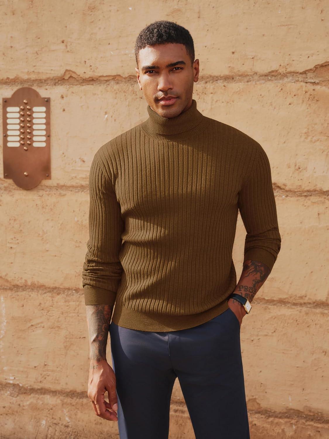 PJ PAUL JONES Men’s Slim Fit Turtleneck Sweater Casual Ribbed Knitted Pullover Sweaters(Coffee)