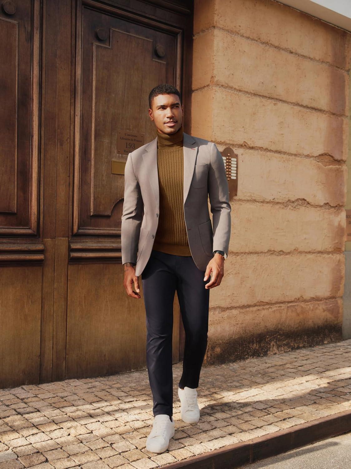 PJ PAUL JONES Men’s Slim Fit Turtleneck Sweater Casual Ribbed Knitted Pullover Sweaters(Dark Grey)