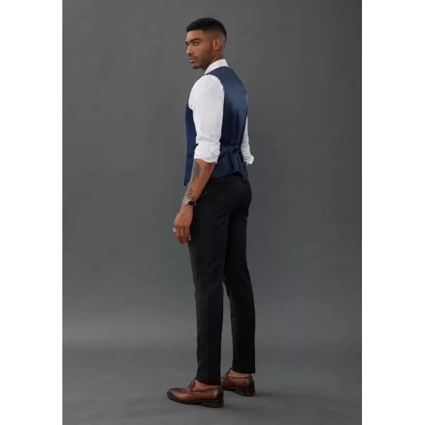 PJ PAUL JONES Mens Suit Vest Casual Business Waistcoat Formal Dress Vest for Wedding(Blue)