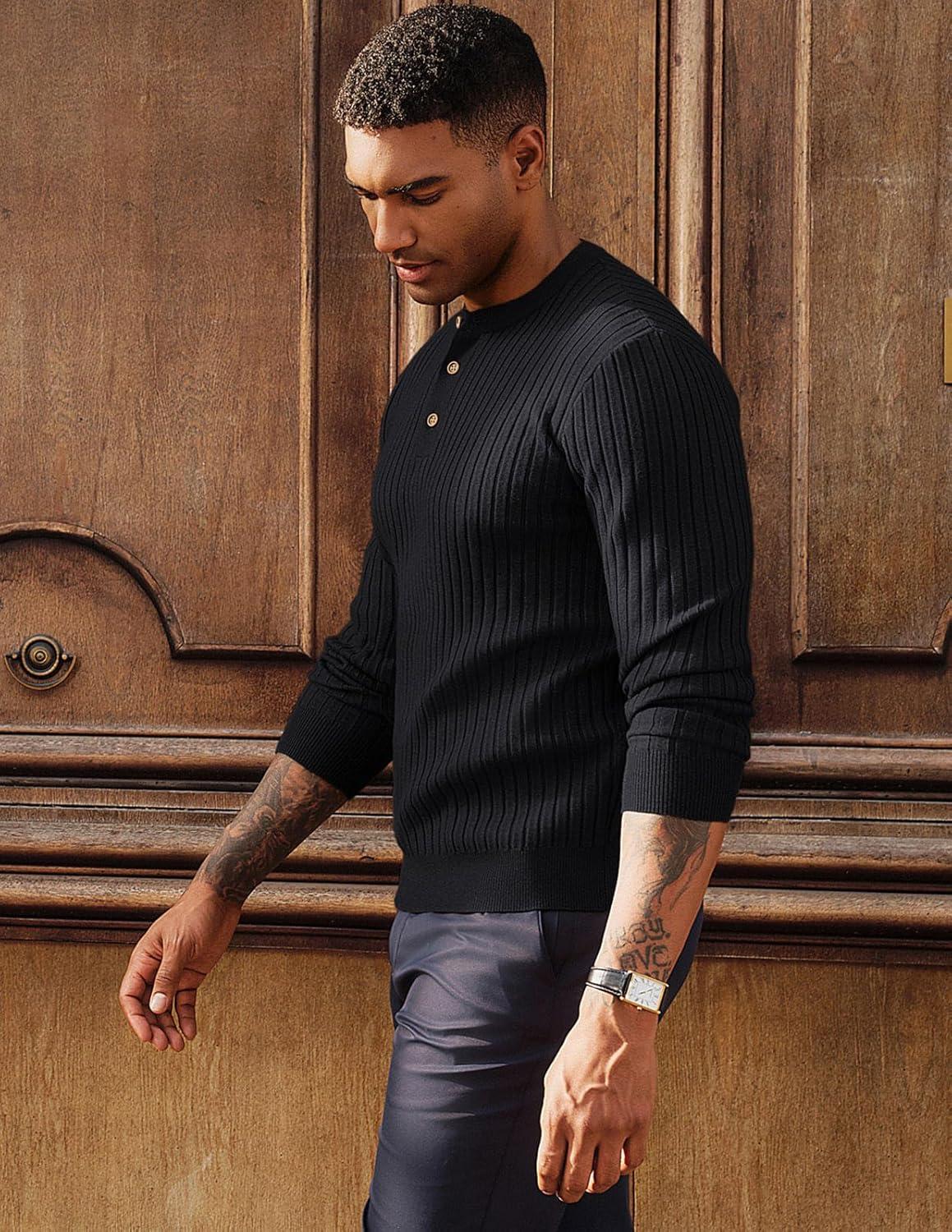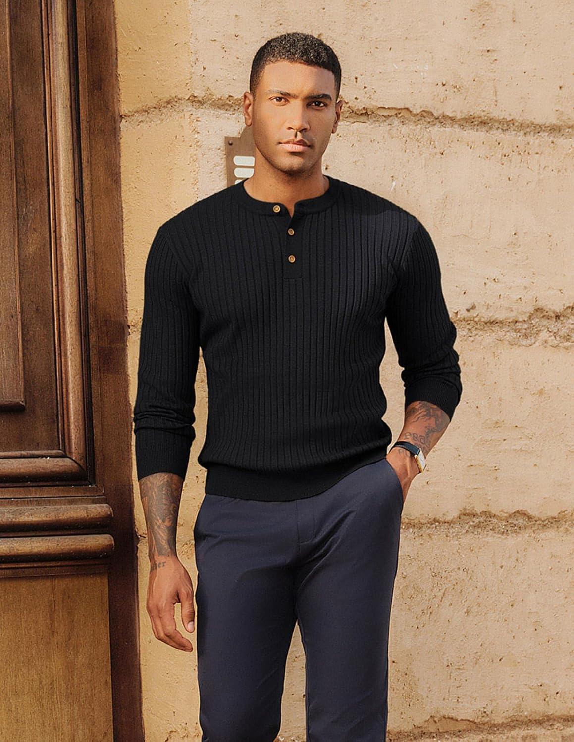 Get more for your money with our exclusive bundle deals on PJ PAUL JONES Mens Sweater Casual Henley Pullover Cable Knitted Sweater(Black) and accessories.
