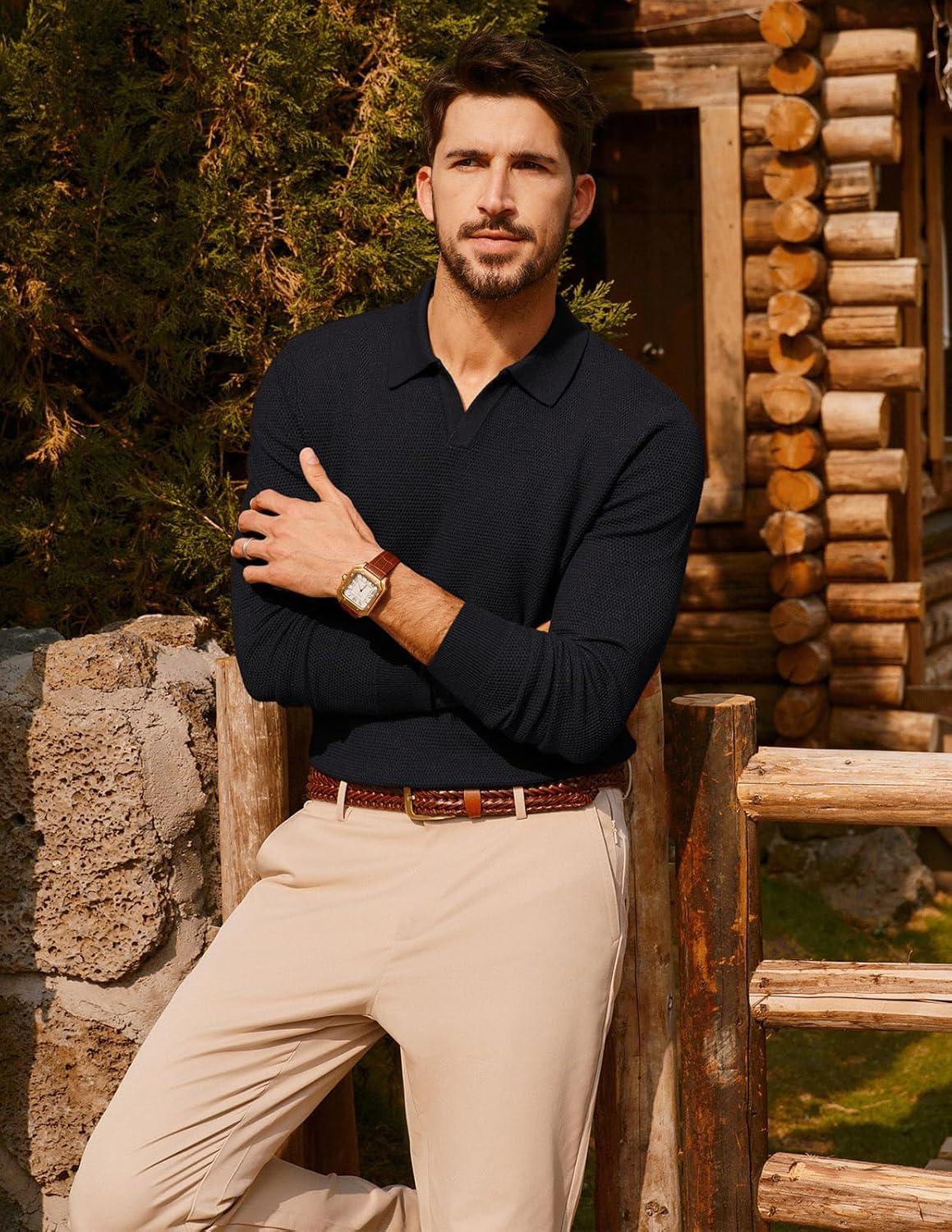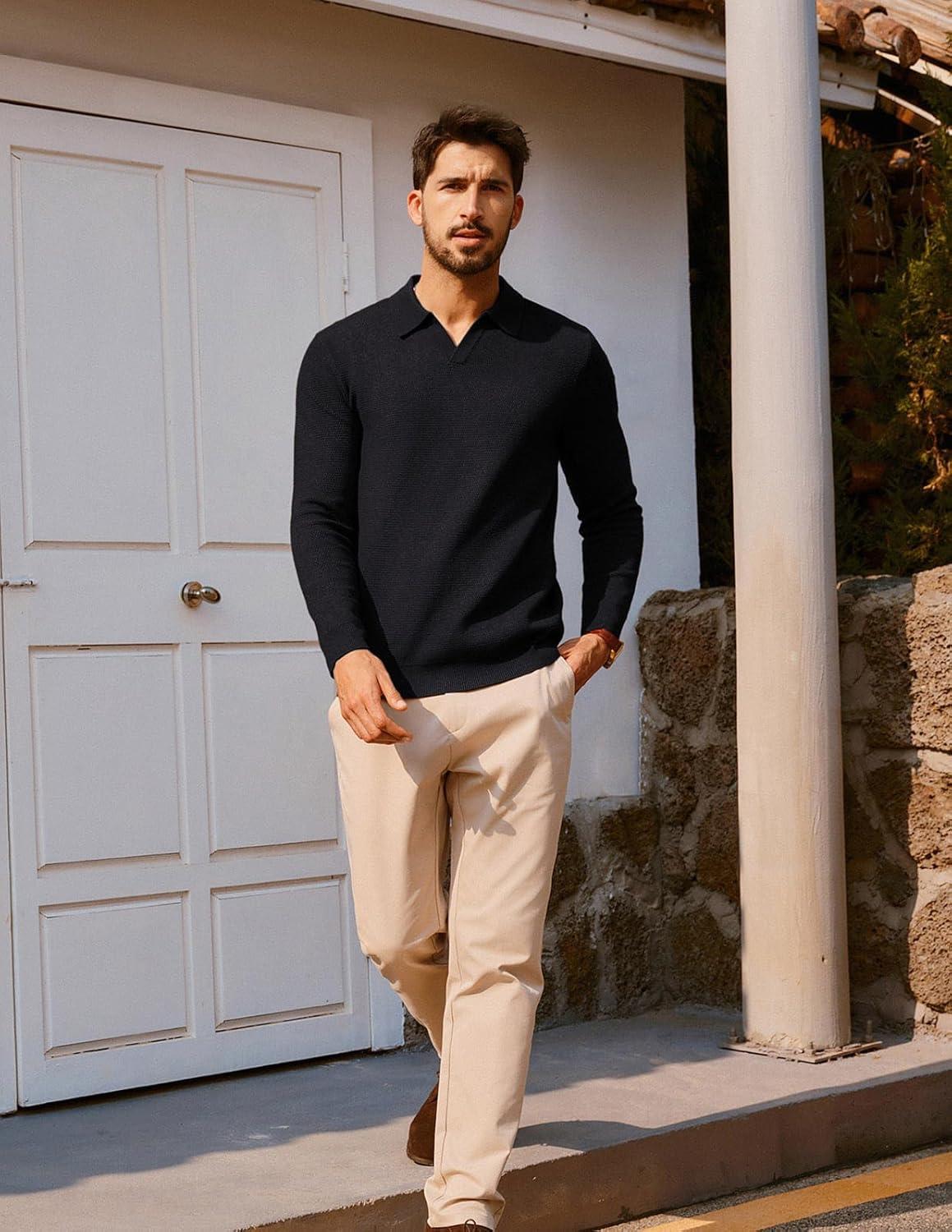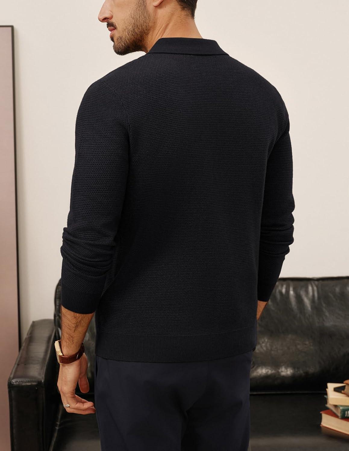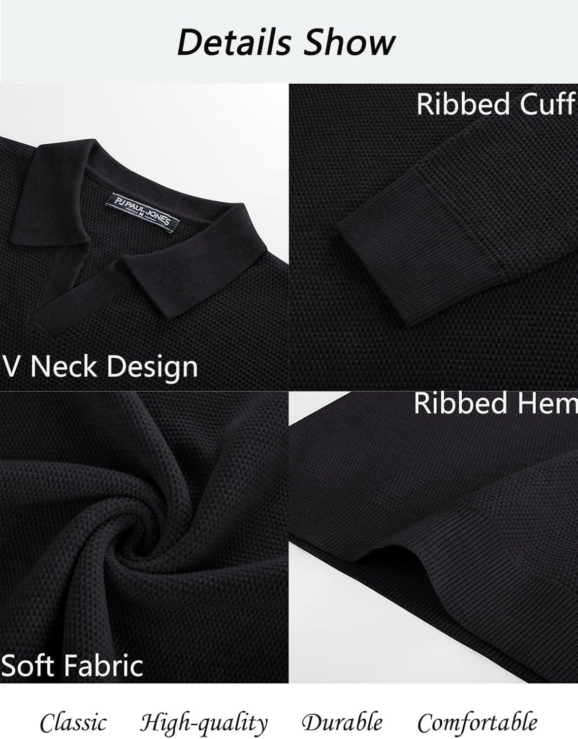 PJ PAUL JONES Mens Sweater Long Sleeve V Neck Pullover Sweater Knitted Textured Sweater(Black)