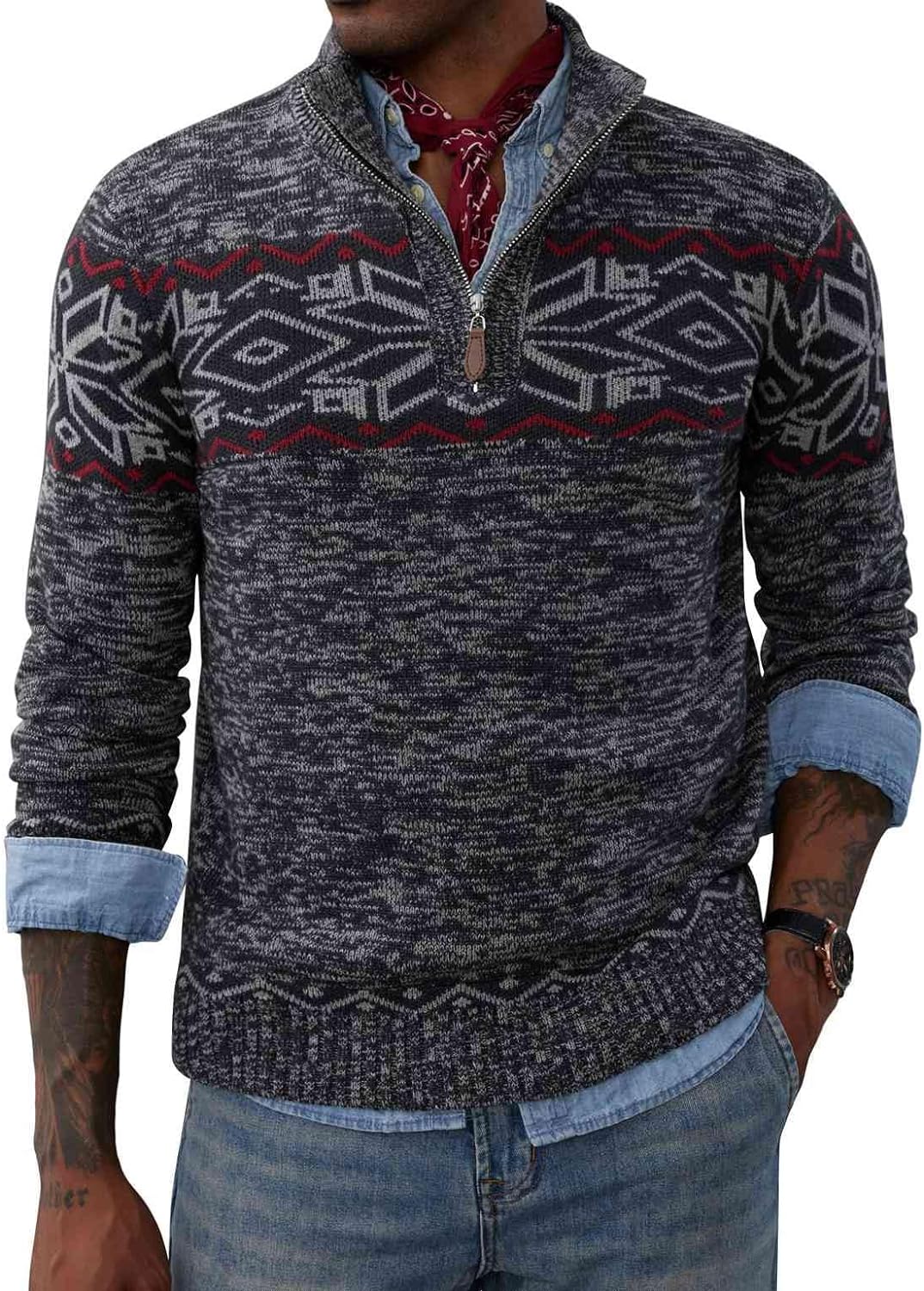 PJ PAUL JONES Men’s Sweater Mock Neck Sweater Quarter Zip Ugly Christmas Sweater(Red)