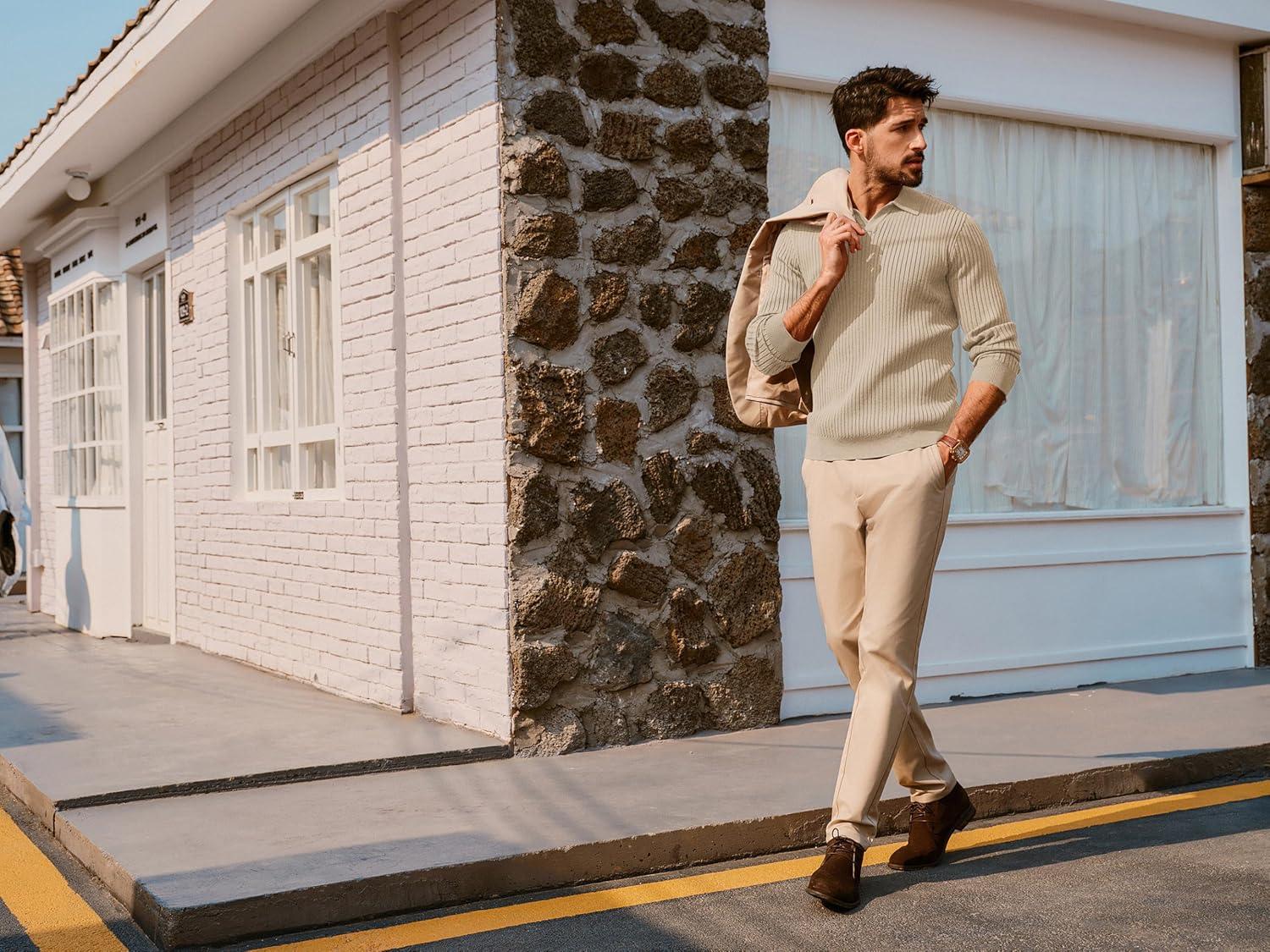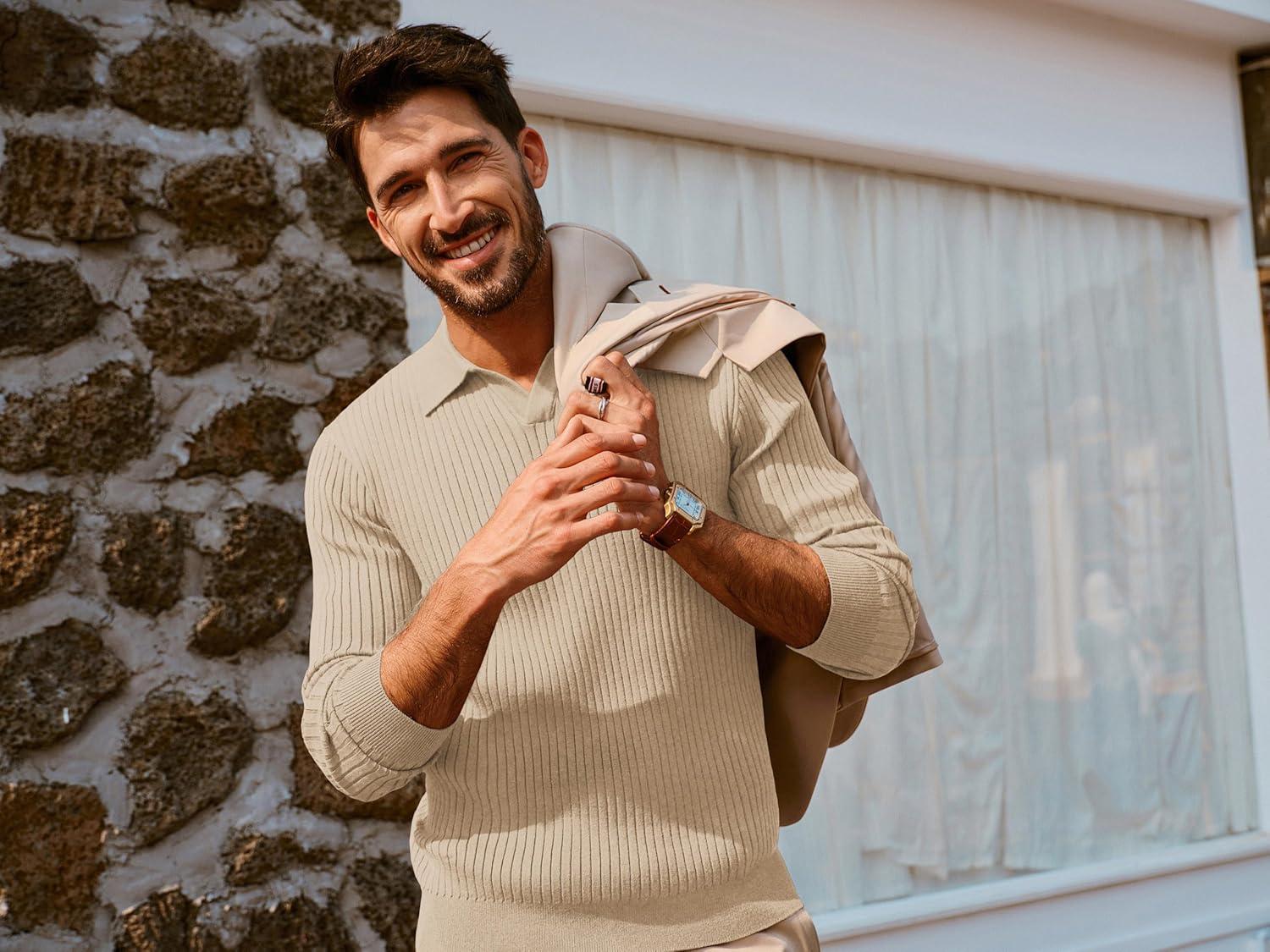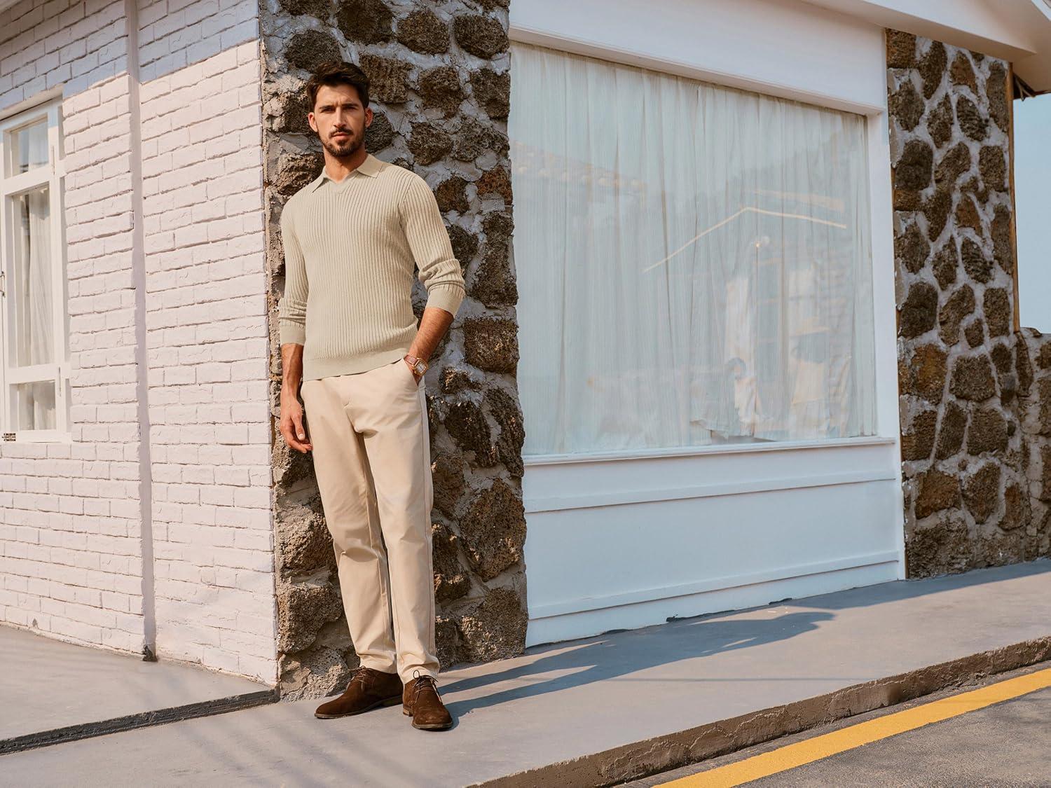 Get up to 70% off on PJ PAUL JONES Mens Sweater V Neck Slim Fit Pullover Sweater Long Sleeve Ribbed Textured Sweaters(Apricot) styles during our end-of-season clearance event.