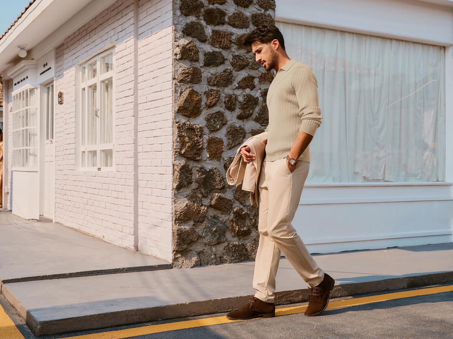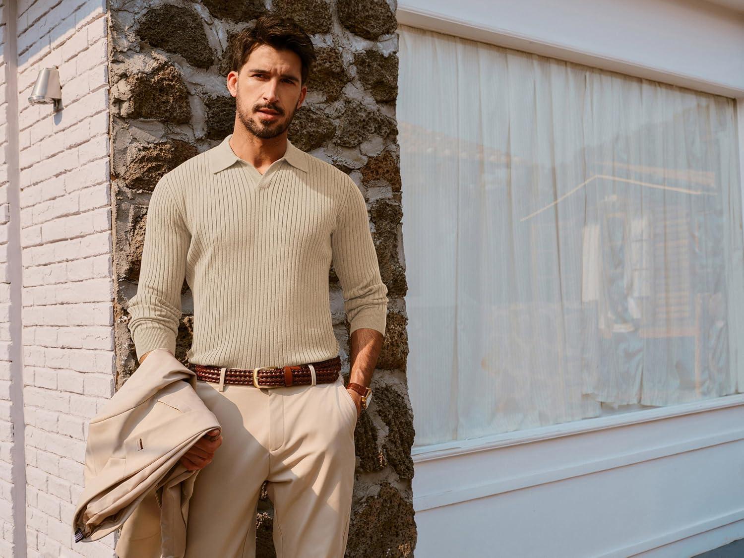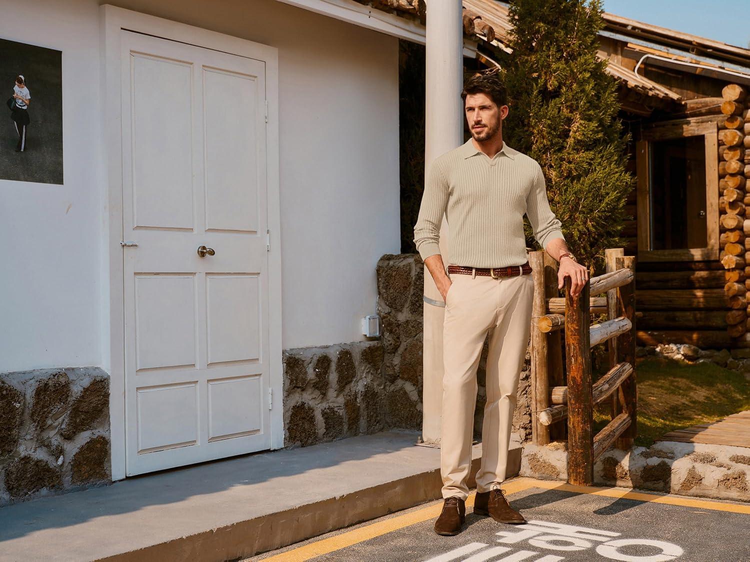 Get up to 70% off on PJ PAUL JONES Mens Sweater V Neck Slim Fit Pullover Sweater Long Sleeve Ribbed Textured Sweaters(Apricot) styles during our end-of-season clearance event.