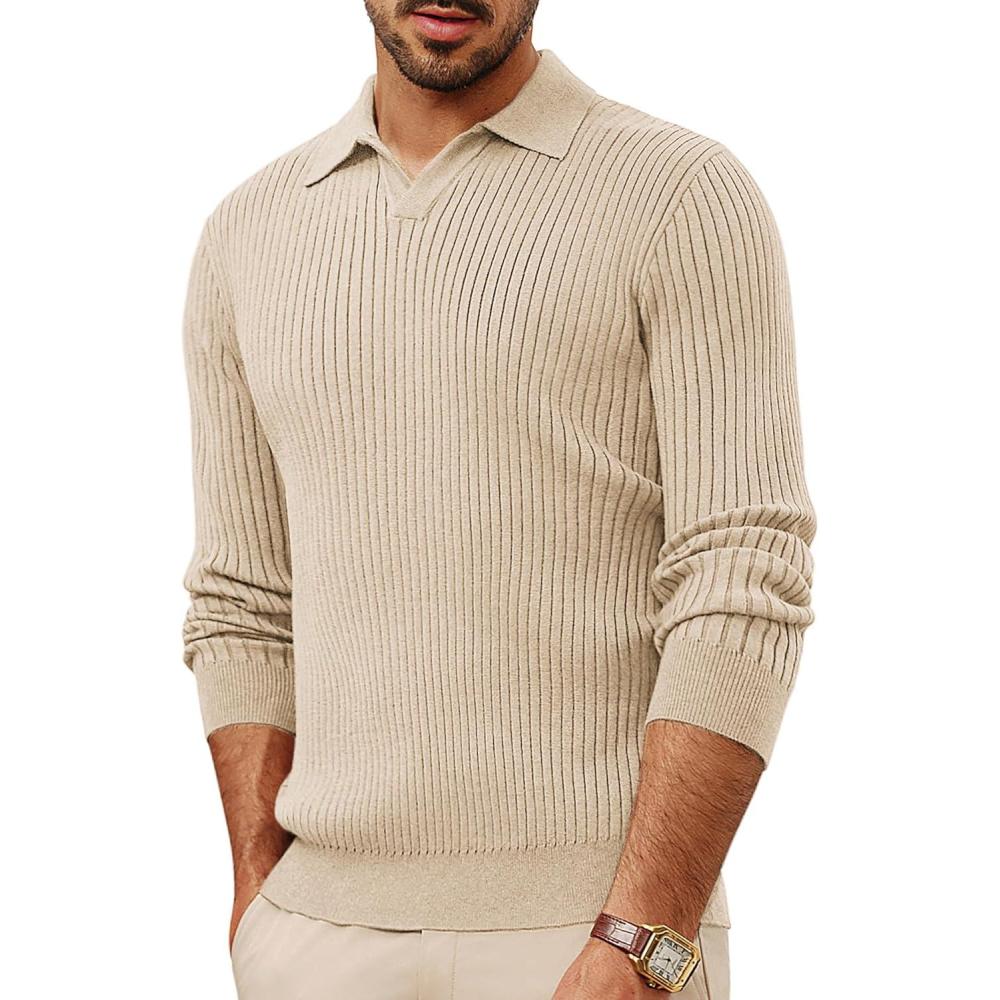 PJ PAUL JONES Mens Sweater V Neck Slim Fit Pullover Sweater Long Sleeve Ribbed Textured Sweaters(Apricot)