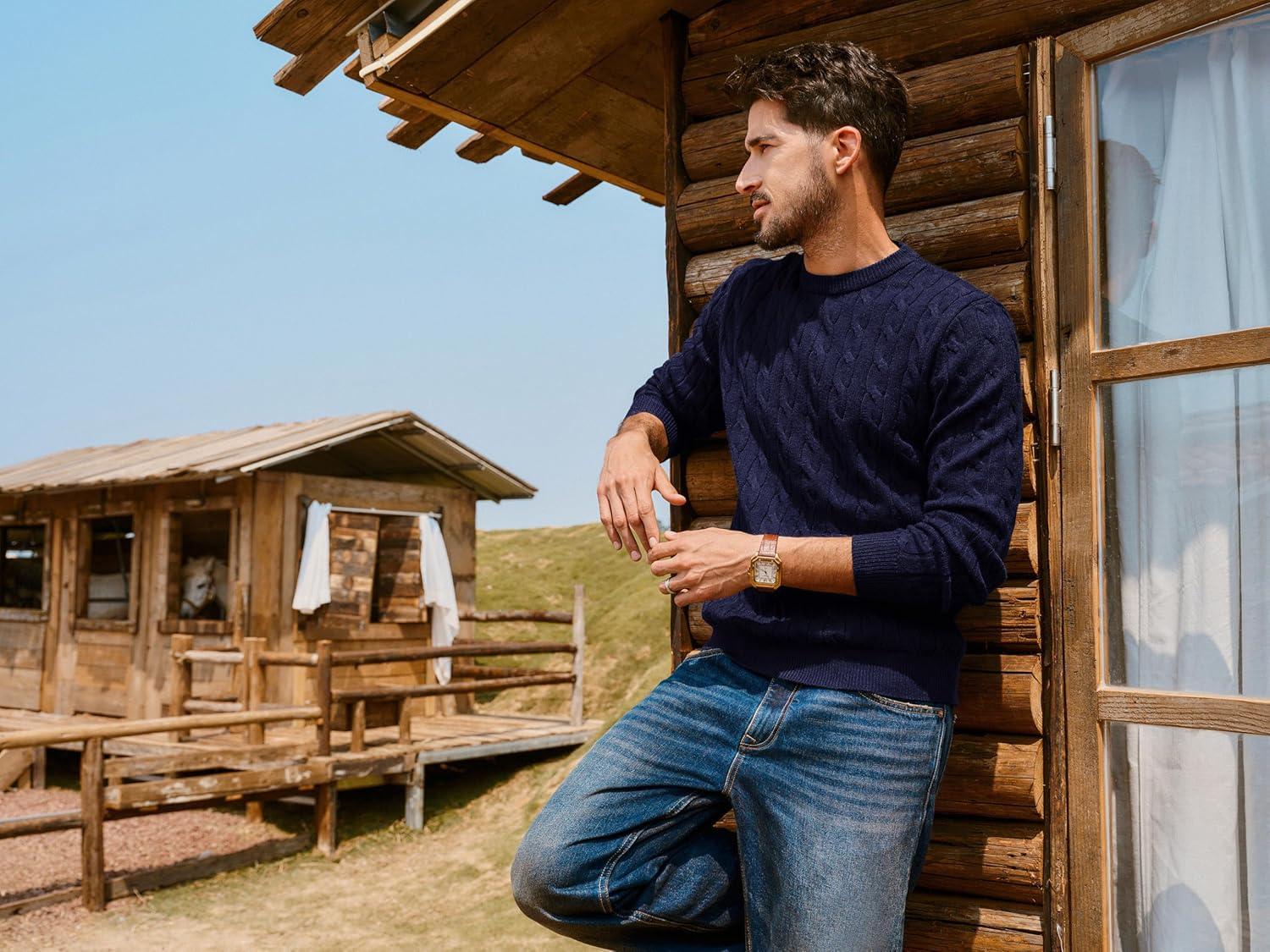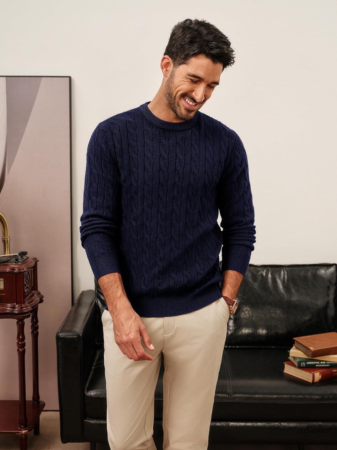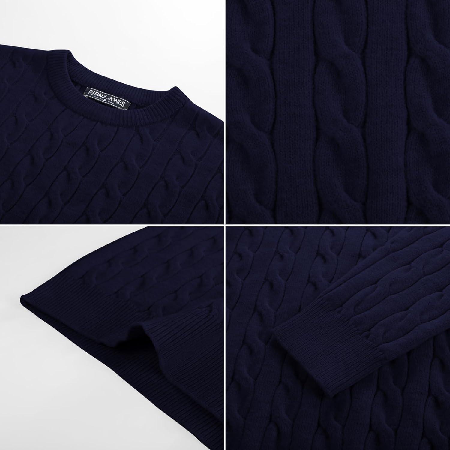PJ PAUL JONES Mens Sweaters Casual Cable Knit Pullover Sweater Crewneck Twist Sweaters(Navy Blue)