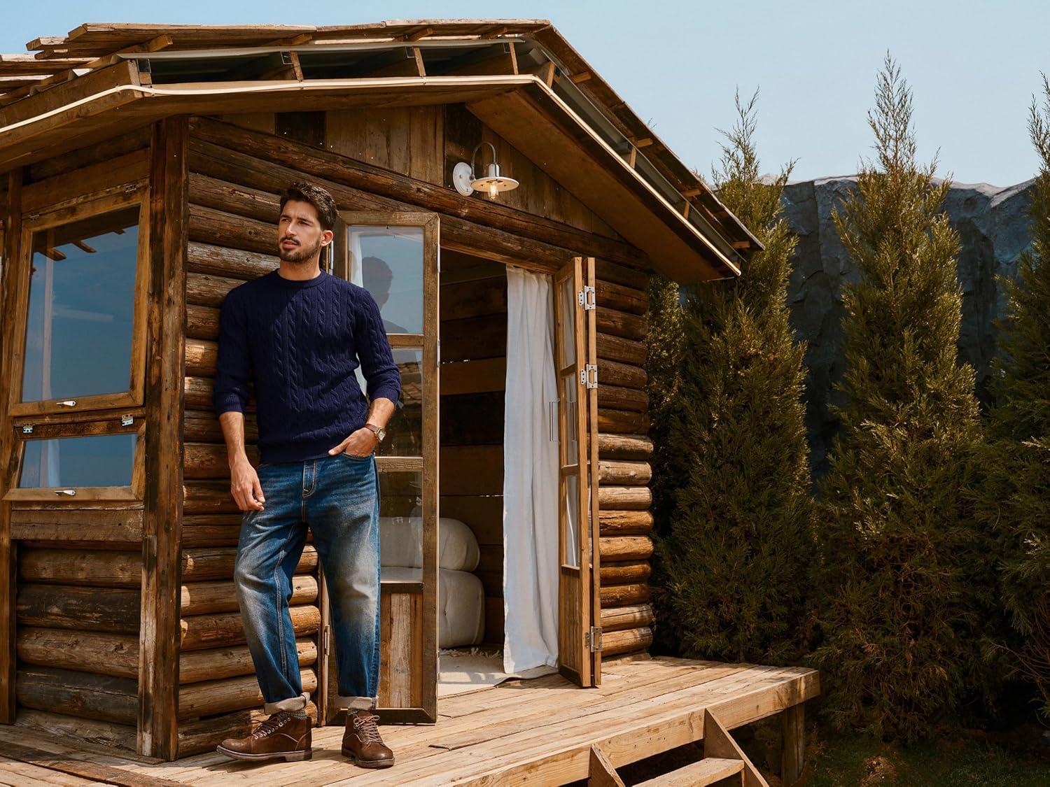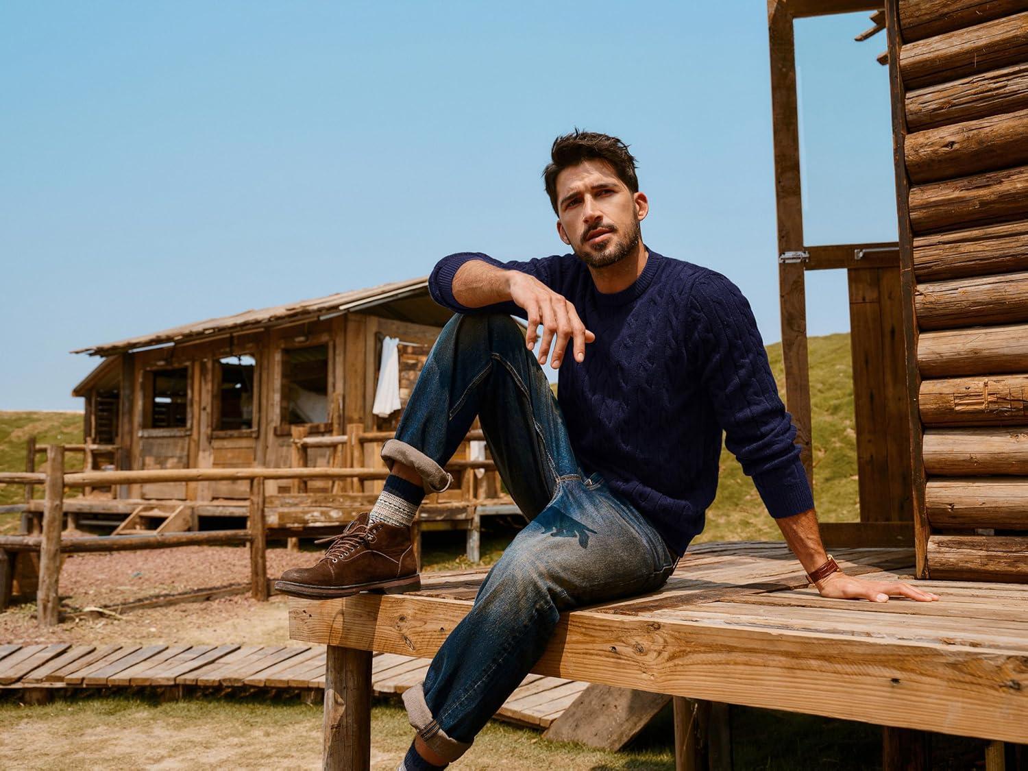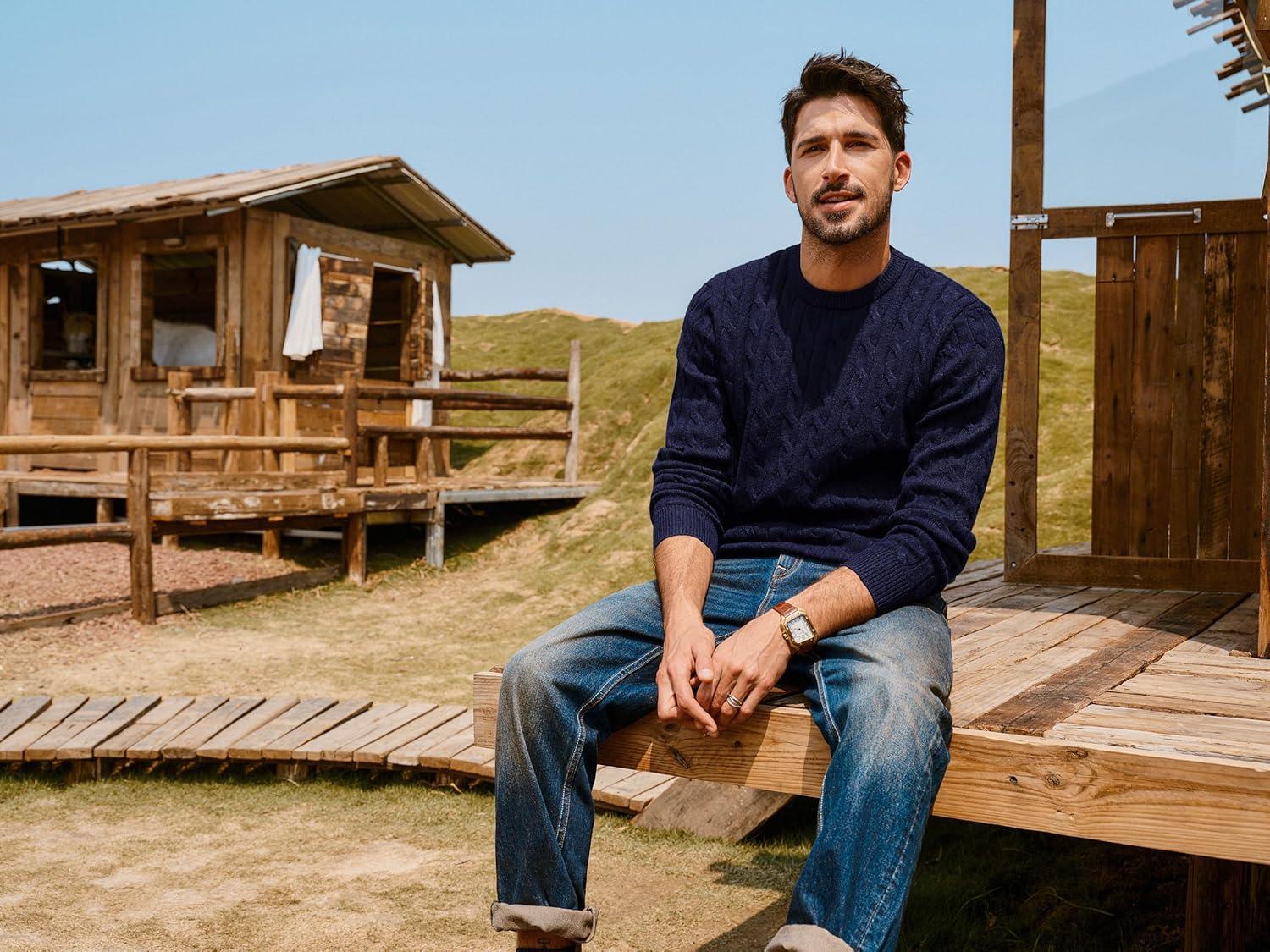 PJ PAUL JONES Mens Sweaters Casual Cable Knit Pullover Sweater Crewneck Twist Sweaters(Navy Blue)
