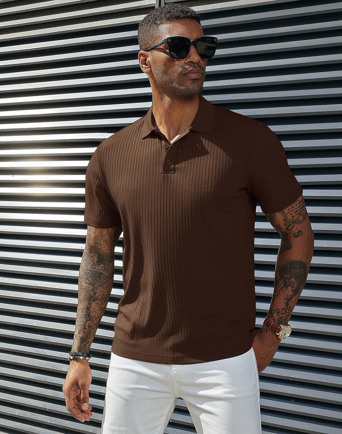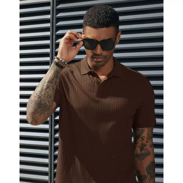 PJ PAUL JONES Mens Texture Polo Shirts Casual Wrinkle Free Elasticity Short Sleeve Knit Golf Shirt Tops(Coffee)