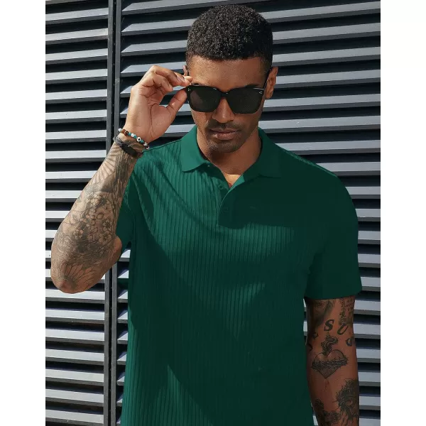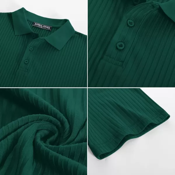 PJ PAUL JONES Mens Texture Polo Shirts Casual Wrinkle Free Elasticity Short Sleeve Knit Golf Shirt Tops(Green)