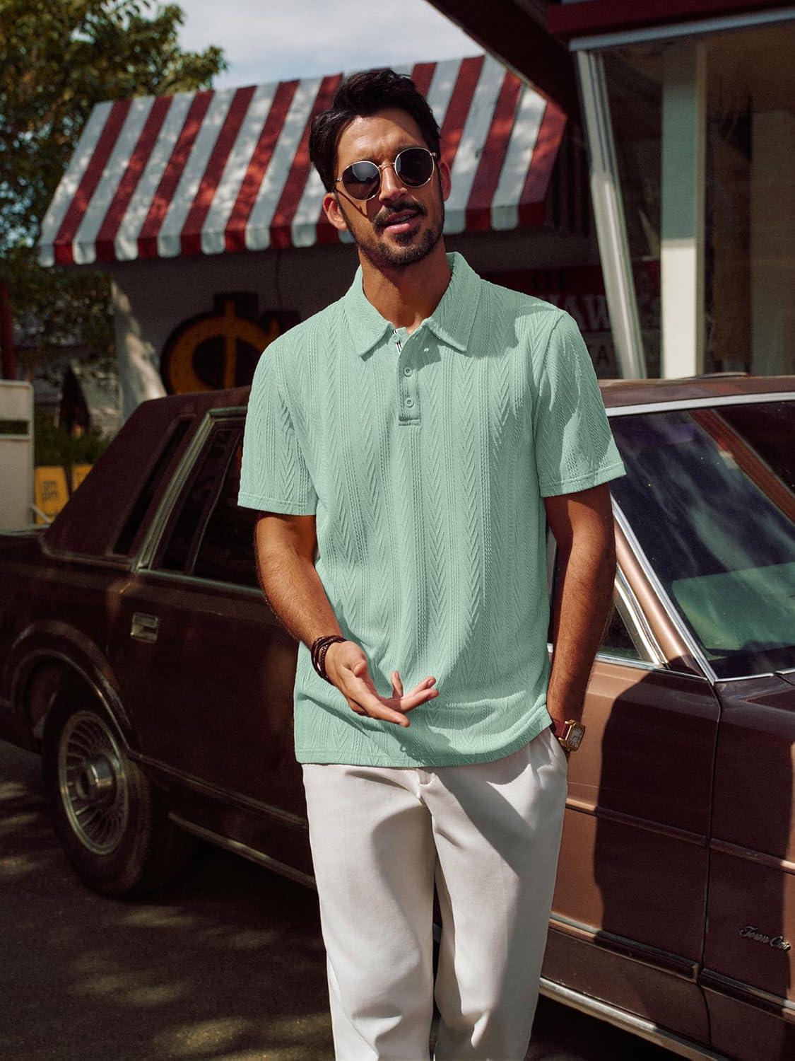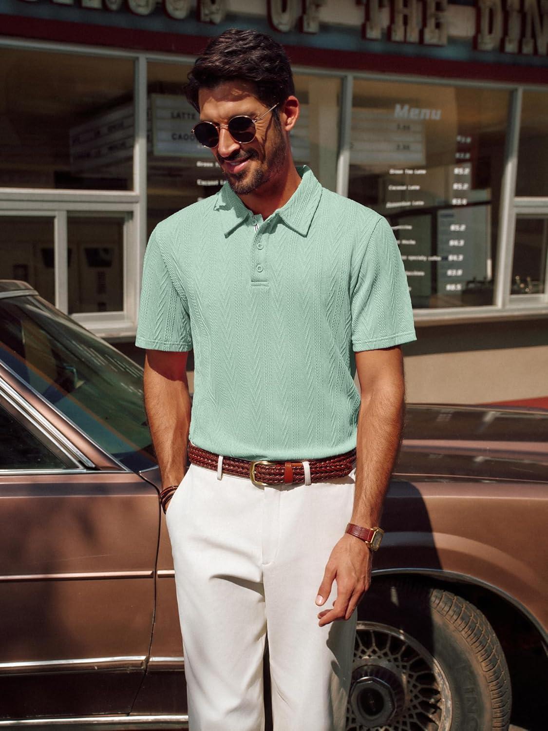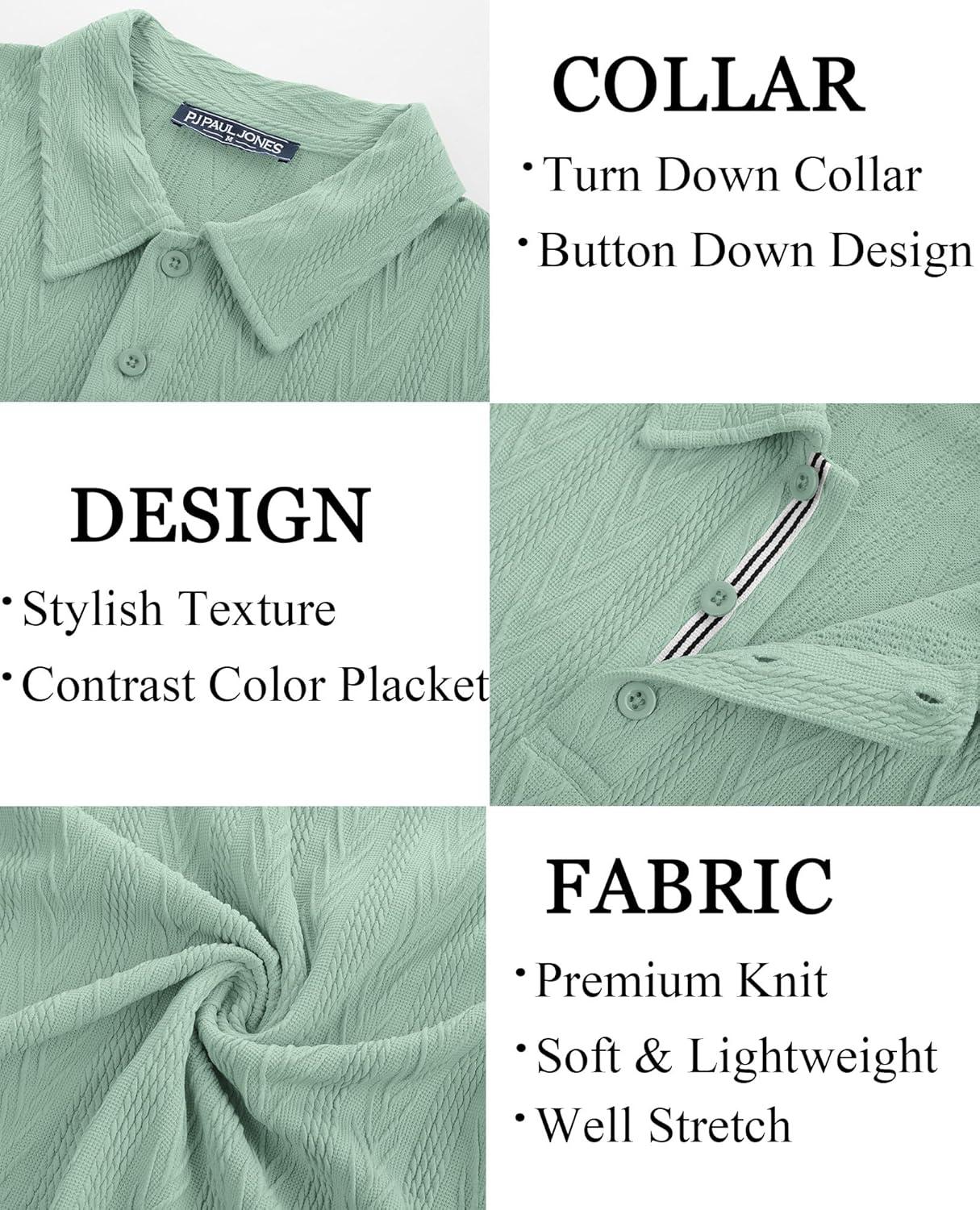 PJ PAUL JONES Men’s Textured Knit Polo Shirt Short Sleeve Regular Fit Stretch Collared Summer Shirts(Light Mint Green)