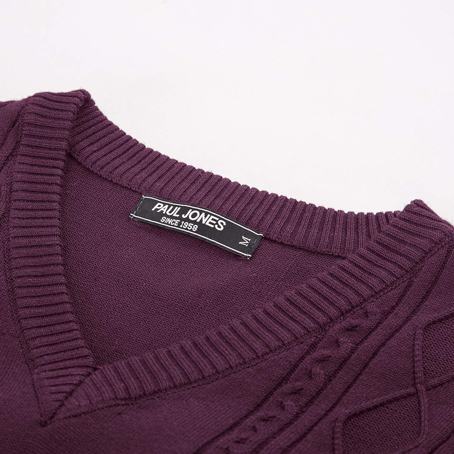 PJ PAUL JONES Men’s V Neck Sweater Vest Cable Knitted Pullover Sweaters Vest(Dark Purple)