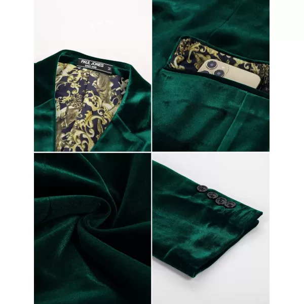 PJ PAUL JONES Mens Velvet Blazer Two Button Sport Coat Solid Slim Fit Suit Jacket for Dinner Prom Wedding(Dark Green)