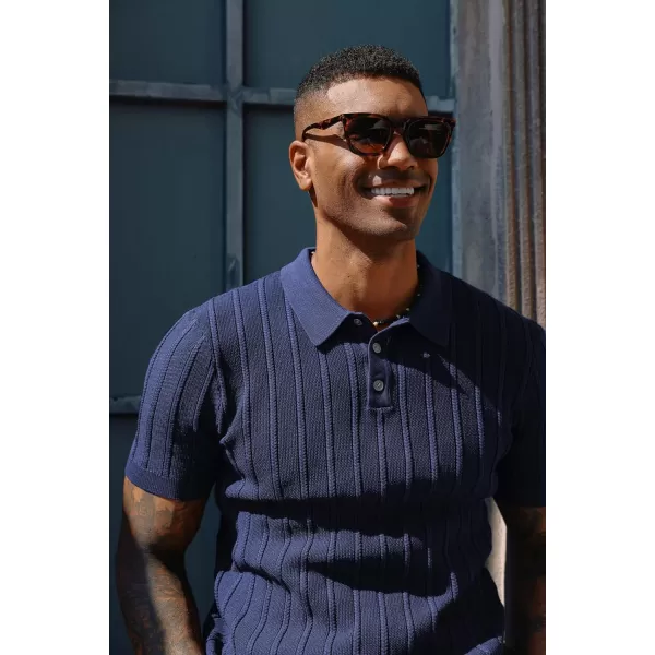 PJ PAUL JONES Mens Vintage Knit Polo Shirts Short Sleeve Twisted Retro Golf Shirt(Dark Blue)