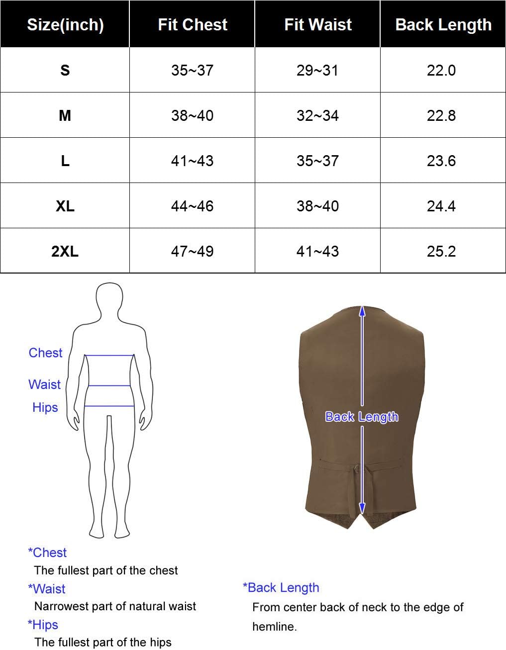 M:Chest:38-40″—Waist:32-34″—Back Length:22.4″