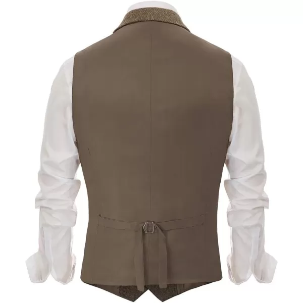 PJ PAUL JONES Mens Western Herringbone Suit Vest Tweed Wool Blend Slim Fit Waistcoat(B-coffee)